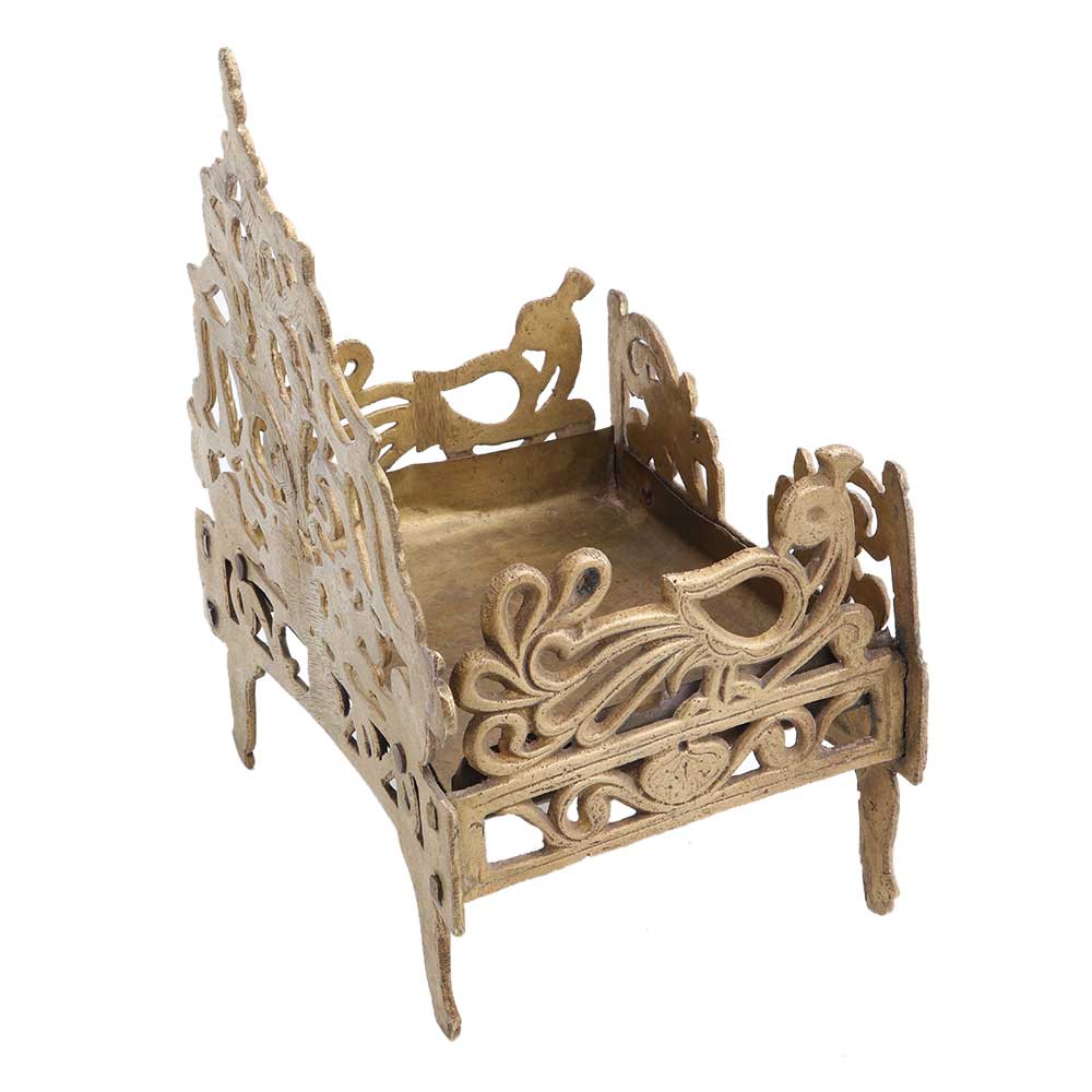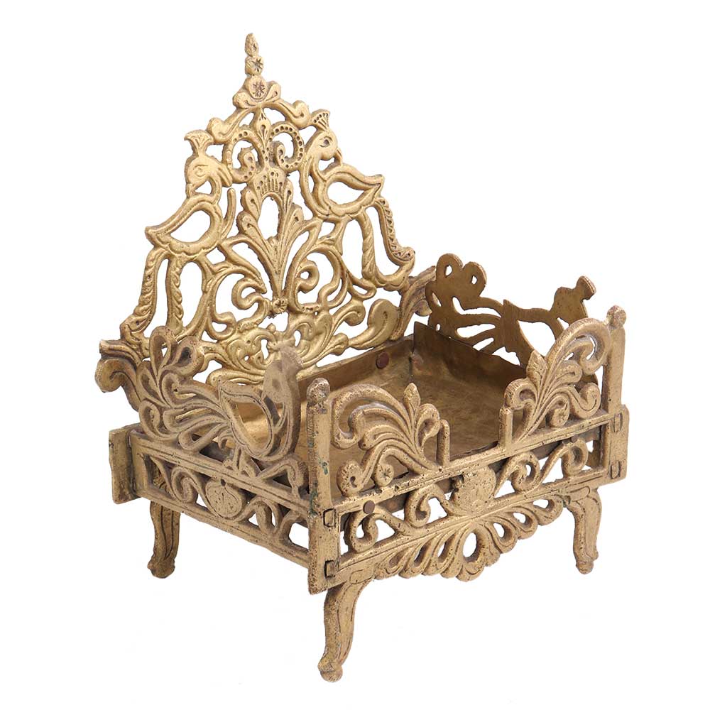 Carved handmade brass Krishna bed or singhasan from Banaras made by the local craftsmen of India . It is often used as a decoration in temples , pooja ghar or other places of worship. Wedding gift, Diwali gift, stage decoration gift it to your near ad dear ones.