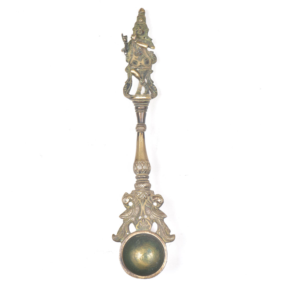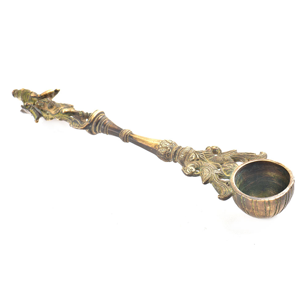 This beautifully accented Brass spoon is used for offering water/oil (Ghee) during puja. You can use this spoon as a decorative item in your home. Look Excellent in your home or temple & Best for gift. You can use this also as candle stand. It is best for gift.