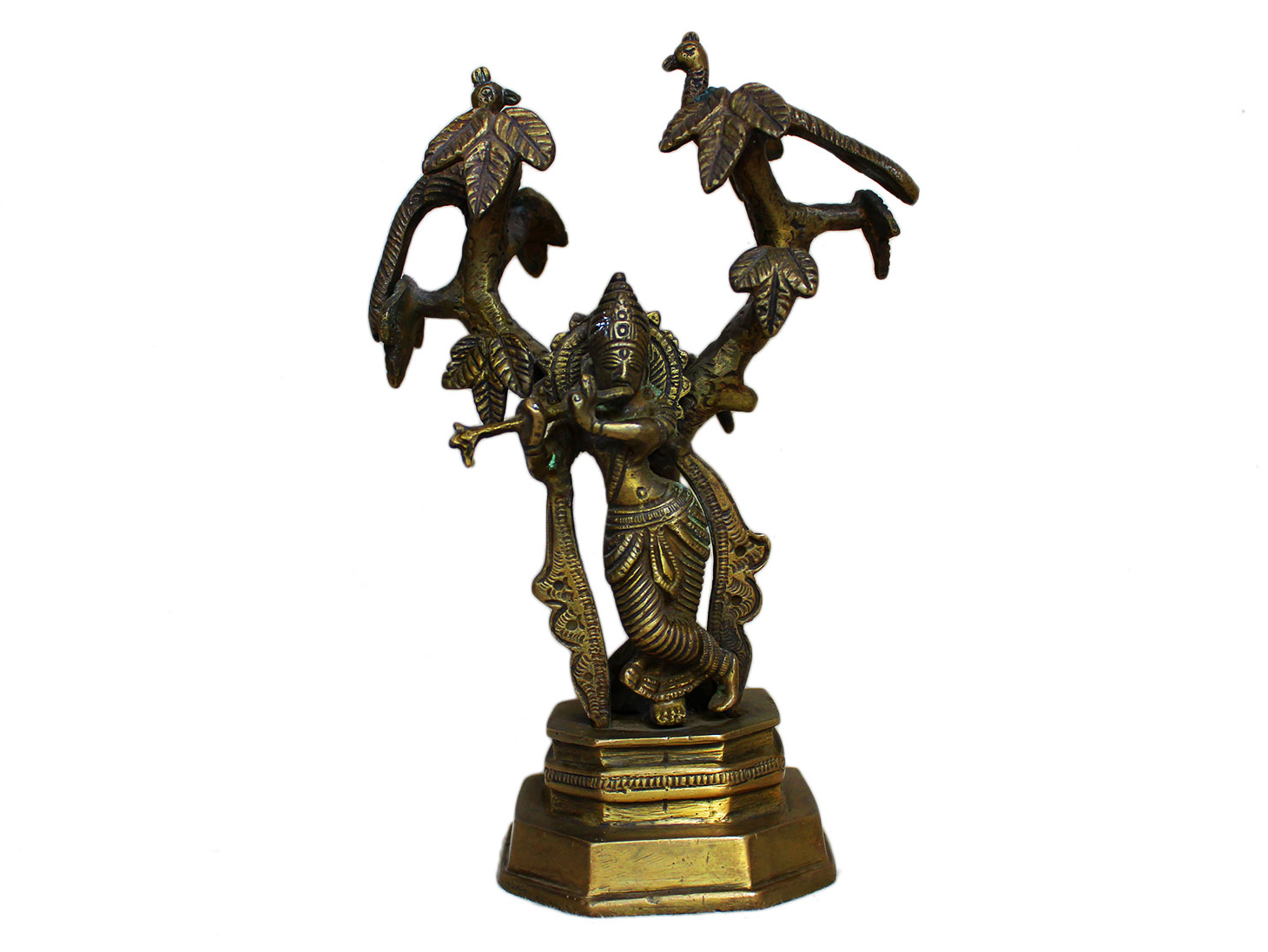 . Brass Krishna. Finely Done to Get That Peaceful Expression on the Face. Brings Instant Peace At a Moment Glance. Fills the Atmosphere with Peace and Positive Energy. Handmade. It is More Than a Statement Piece.