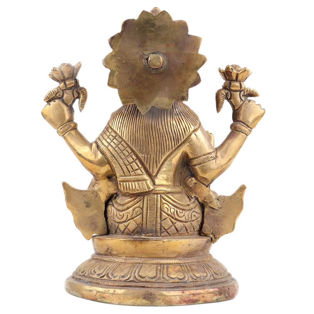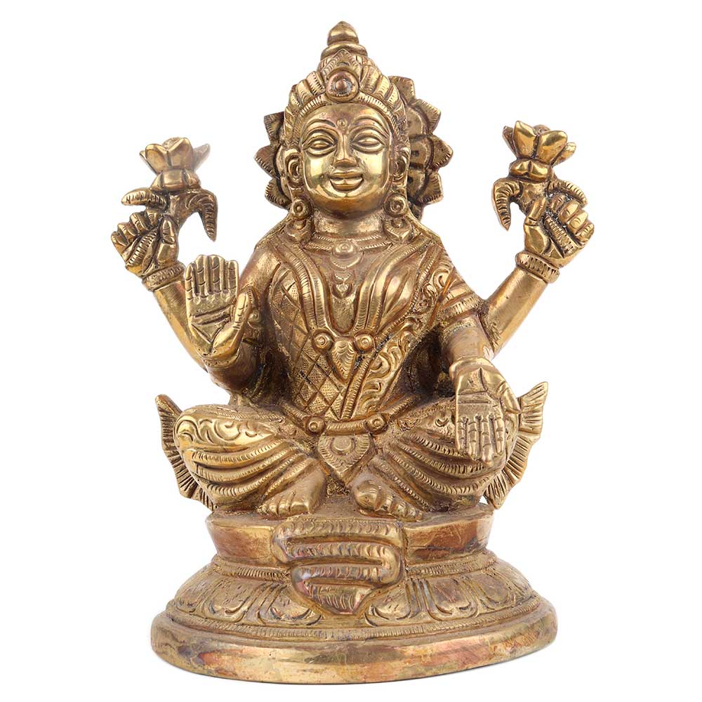 Brass Laxmi Statue sitting on a lotus base with four hands the hands on the back has lotus flower. The hands on front has pot with coin spread on the goddess palms . The other hand show the goddess blessing her followers. Use it yourself in your poja room, in hotels, restaurants, Schools Etc. Gift it to your near and dear ones on Diwali, new year, wedding, house warming, and birthday gift .