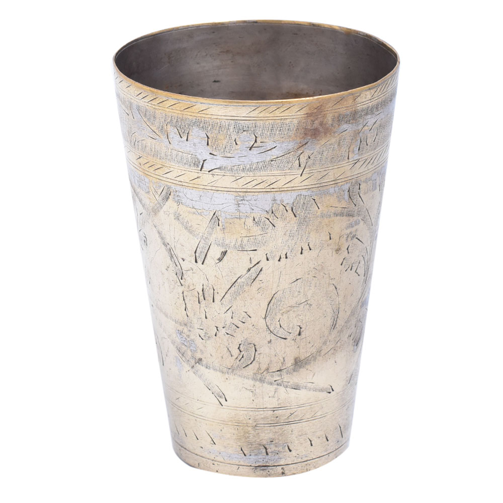 Used brass Lassi glass with faded design is a sturdy, elegant, and lovely addition to your home decor. is a strong, elegant, and lovely addition to your home's decor. It is quickly transformed into a lovely memorial day, wedding, Diwali, or Valentine gift item.
