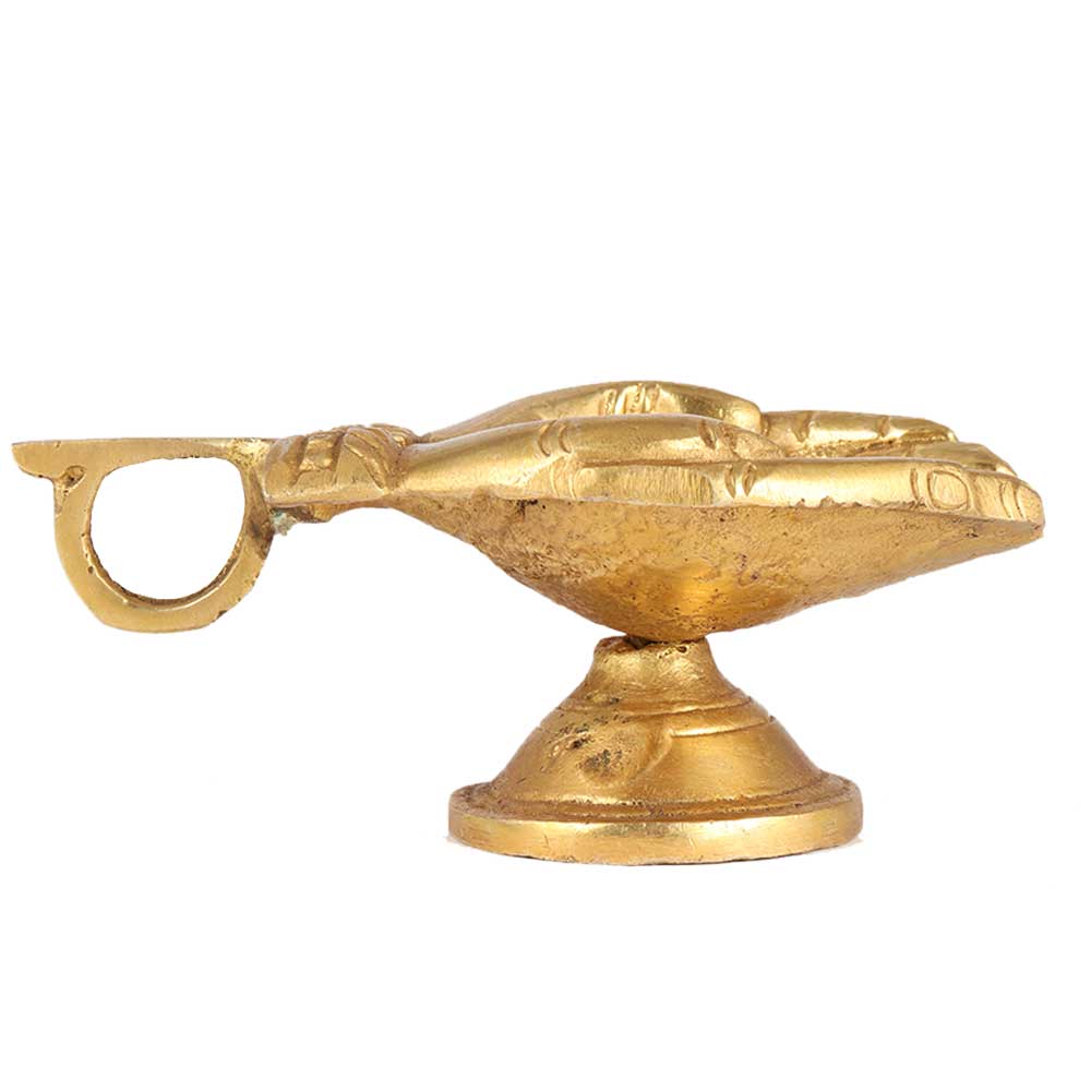 These high-quality brass oil lamps handcrafted by Indian artisans are an excellent return gift for housewarmings, wedding ceremonies, pooja functions, Diwali parties, chaturthi, and Durga puja. Diya for conducting worship and aarti, or for Hindu interior decorating. In the late afternoon, light your home Temple mandir with this ghee oil wick diya lamp.