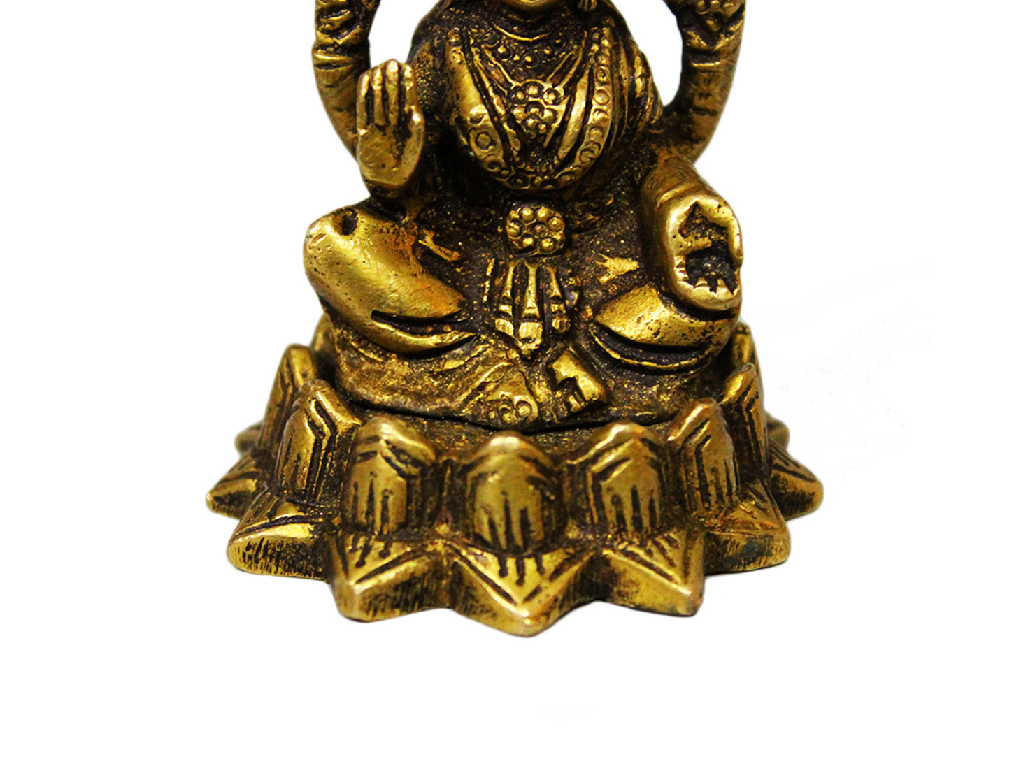 . Brass Laxmiji. Finely Done to Get That Peaceful Expression on the Face. Brings Instant Peace At a Moment Glance. Fills the Atmosphere with Peace and Positive Energy. Handmade. It is More Than a Statement Piece.