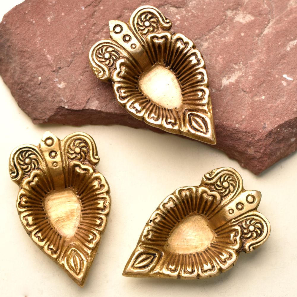 Bring elegance and auspicious energy to your home with this Brass Leaf Shaped Diya with Intricate Design. Handcrafted from solid brass with a radiant golden finish, it features fine detailing that enhances both its beauty and sacred symbolism. Representing growth, purity, and prosperity, this diya is a perfect choice for Diwali lighting, mandir rituals, and festive gifting.