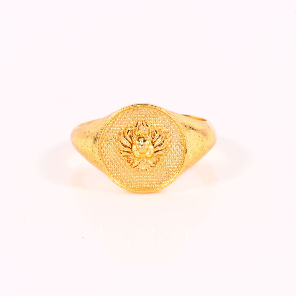 The Brass Lion Designer Ring for Men with 22K Gold Plating is a commanding expression of strength, leadership, and artisan mastery. Handcrafted in brass and enriched with luminous 22K gold plating, this ring features a sculpted lion motif symbolizing courage and authority. Its bold form is balanced with a compact, wearable size, making it suitable for everyday confidence. Designed as a powerful gift for him, this ring blends symbolism with refined craftsmanship.