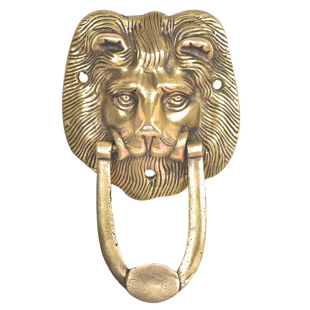 Bring the inviting warmth of nature to your front door with the addition of the lion Head door knocker. Made of solid brass, this door knocker includes matching mounting hardware and striking plate. Lion door knockers is an ideal decorative accent for a front entryway and is a great way for stylishly announcing a visitor.