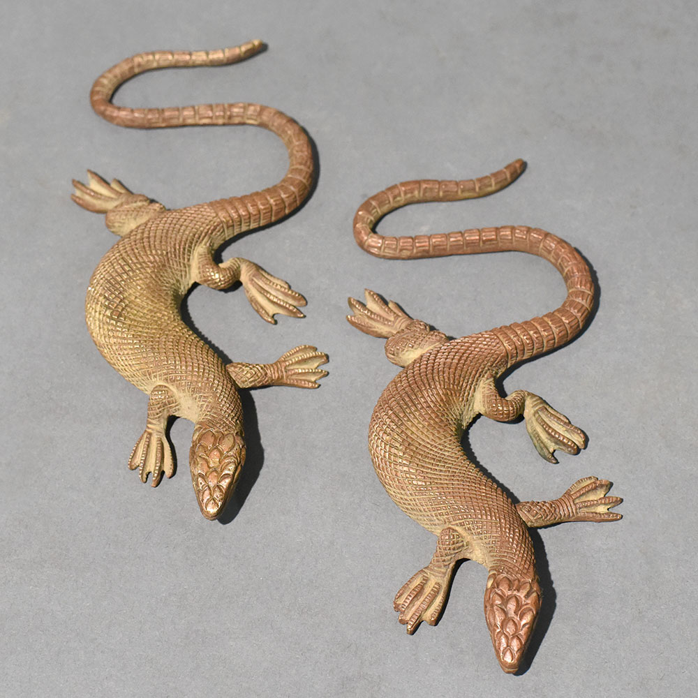 - Brass lizard pair decorative sculptures