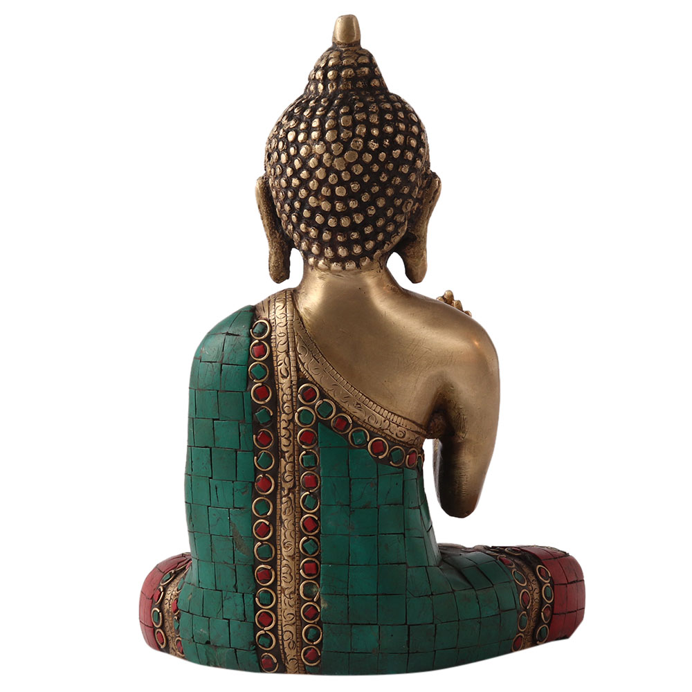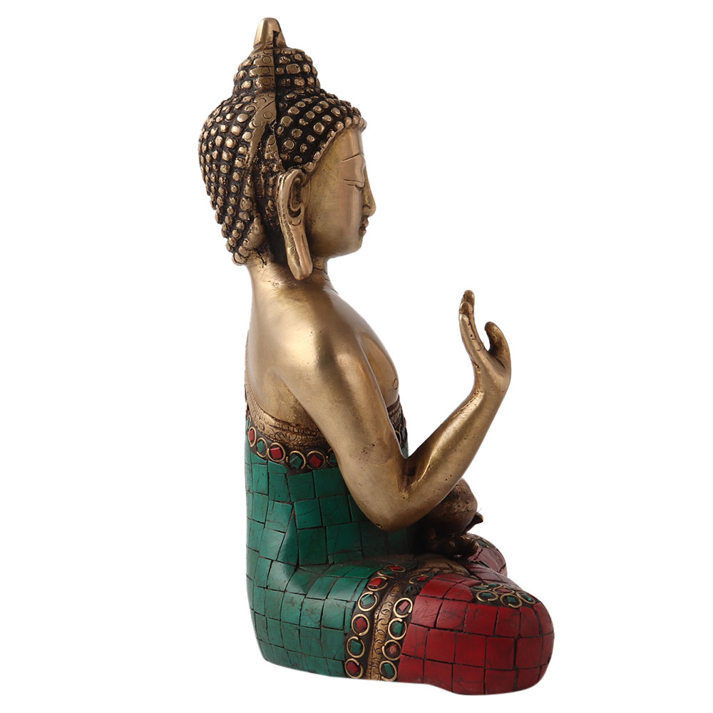 Exotic brass statue of Lord Buddha preaching his dharma. This brass statue is efficiently carved from brass with hands to provide a remarkable design. Place this statue in your meditation or prayer room to bring peace and tranquilly to your life. It spreads positive and relaxing energy that helps people focus better during meditation and work. Display this decorative piece to enhance the interior of your home, office, hotel or restaurant. Give it as a gift to your loved ones on special or festive occasions.