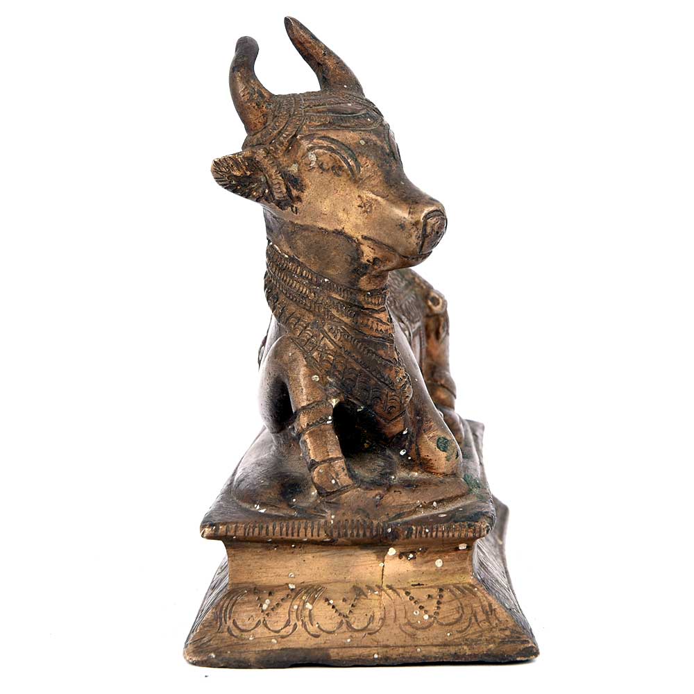 Bull has Symbolic Status in Hinduism and is a Vehicle for Shiva. Body Contours of the Bull Have Been Very Artistically Presented in This Sculpture. Carving Designs on All Sides Make This a Good Three-Dimensional Decor Piece.