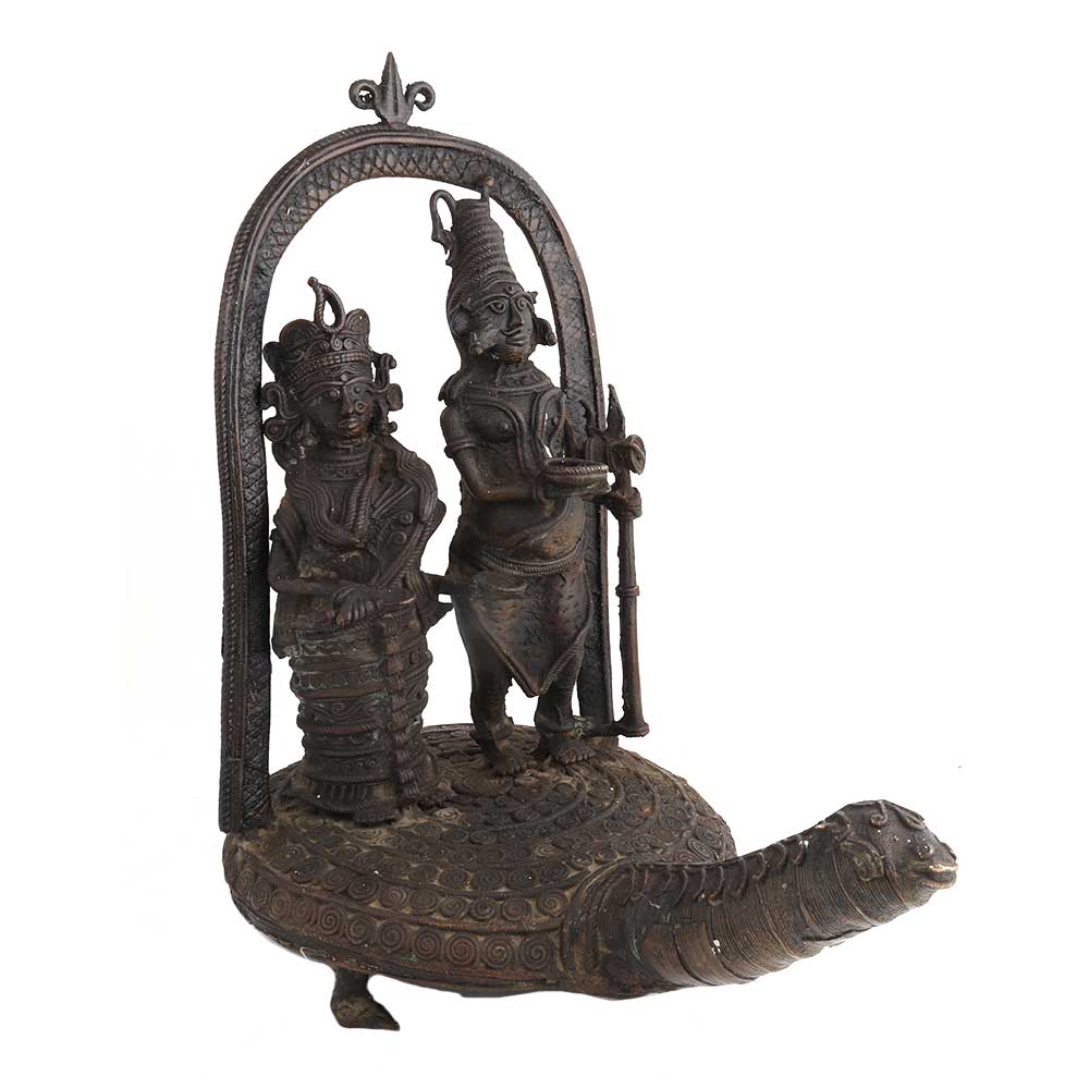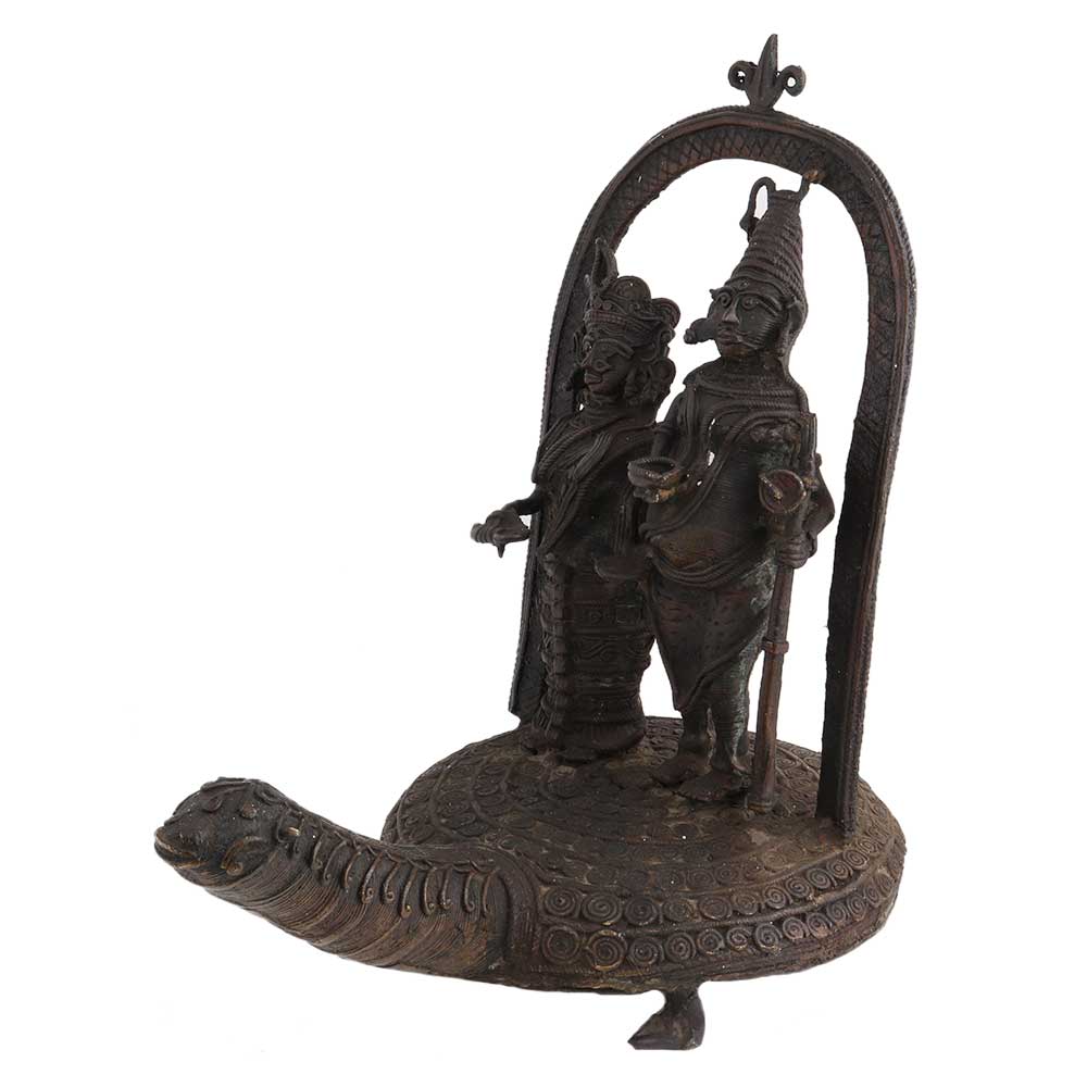 Brass Lord Shiva With Parvati Tribal Art Turtle can be used as business gift and displayed in Indian restaurants and counter spaces in retail stores. Diwali gift, new year gift, Christmas gift and house warming gift for your near and dear one.