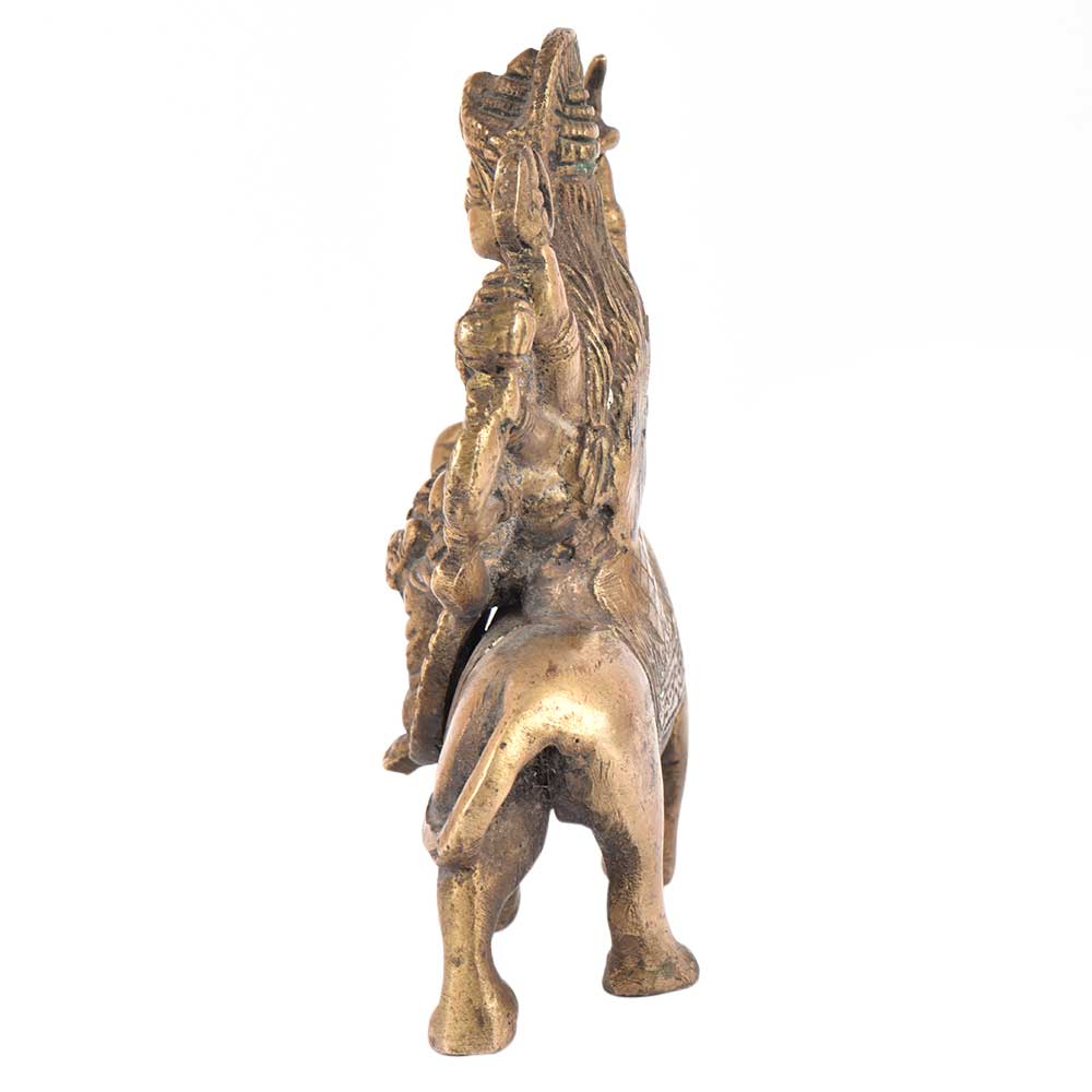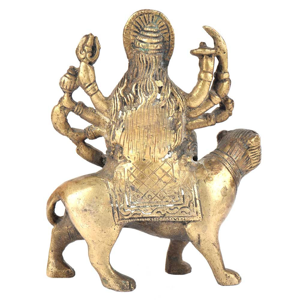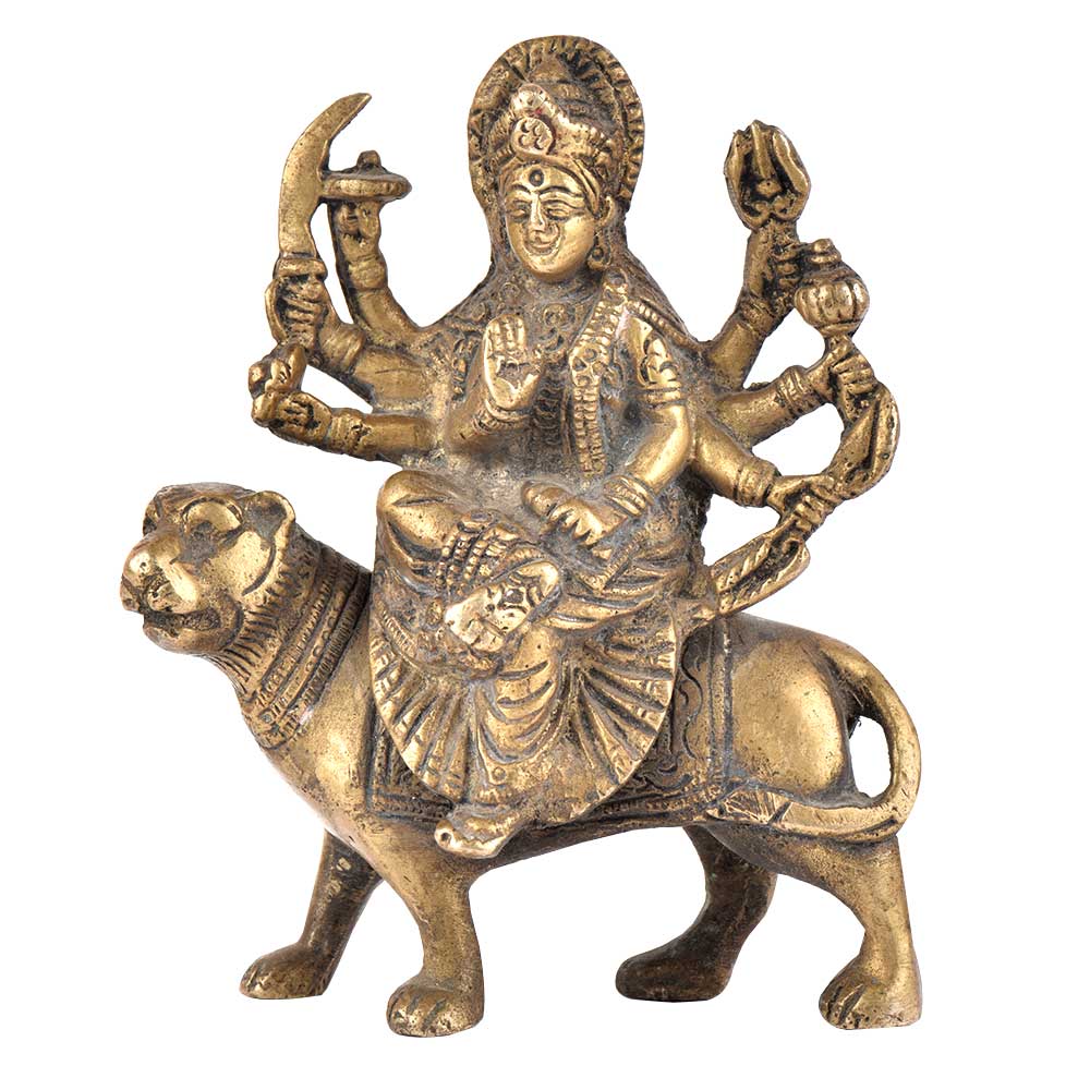 Durga Maa figurine is sitting on the tiger and this figurine is made very beautifully. This figurine is made of brass and is handmade by the skilled craftsmen of India. This durga maa figurine has 8 hands holding weapons in her hands.