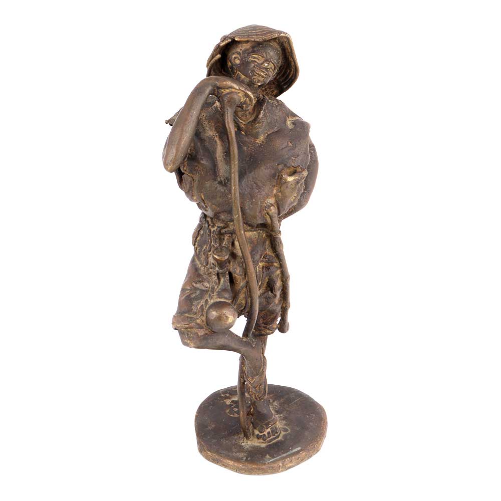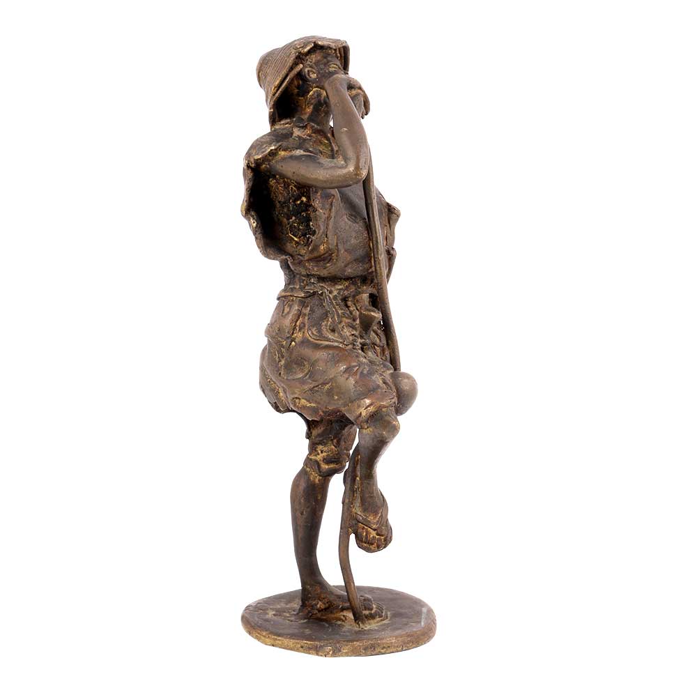 Handmade Bronze Man Standing with as Statue Made by Artisans That Capture the Day to Day Activities of Village Folks and Used as a Display Unit of Your Living Room and Also as a Gifting Option.