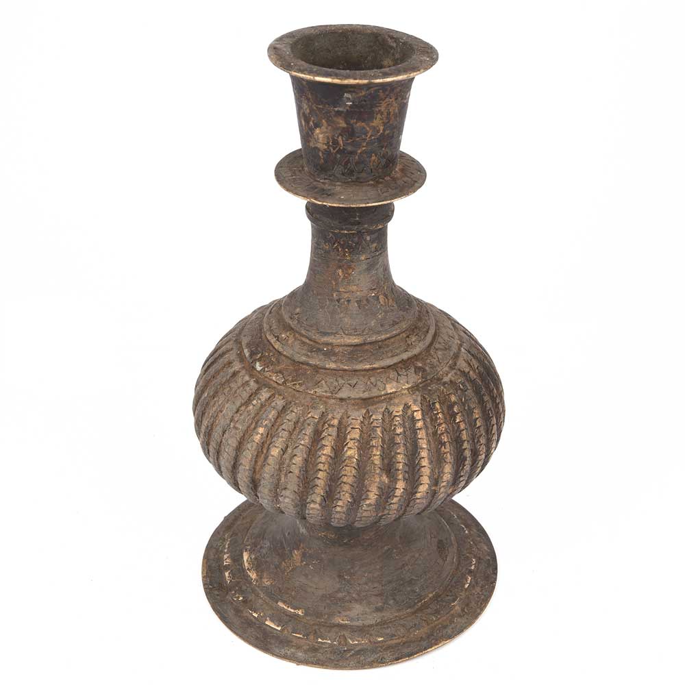 Brass Melon Shape Hookah Base with Rich Patina. Vintage India Fine Hand Crafted Engraved Brass Hookah Base Pot.