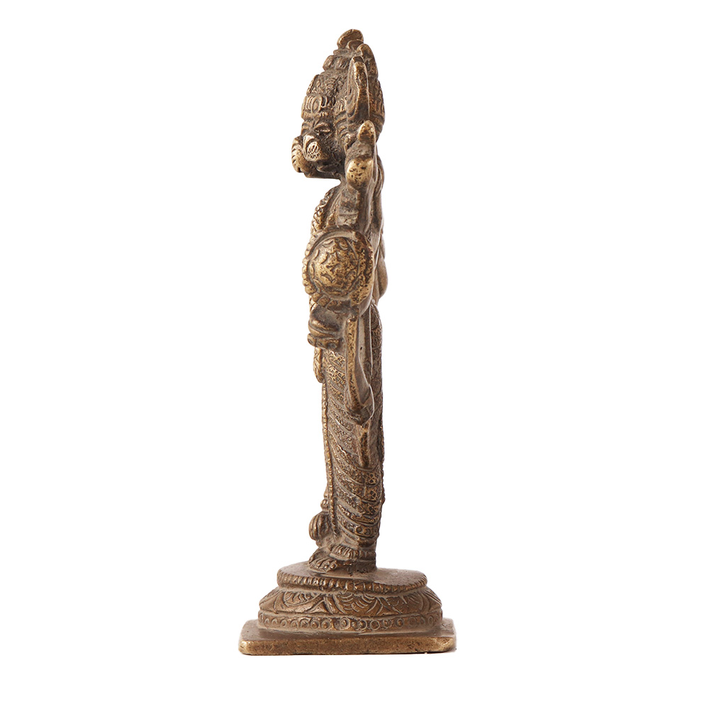 Lord Hanuman Hindu God Panchmukhi metal statue is a beautiful representation of the Hindu god Hanuman. In Hinduism, Hanuman is worshipped as a symbol of strength, devotion, and unwavering loyalty. The statue typically depicts Hanuman with five faces, hence the name "Panchmukhi" which means "five faces." Each face represents a different aspect of his divine nature and power. The statue is made of brass and features intricate details, making it a beautiful work of art statue decor. It is often placed in homes, temples, and places of worship as a symbol of protection and blessings. Devotees believe that displaying this statue in their homes will bring good fortune and success, and will protect them from harm. Overall, the brass Lord Hanuman Hindu God Panchmukhi statue is a indian figurine that symbolizes the god's strength, devotion, and power.