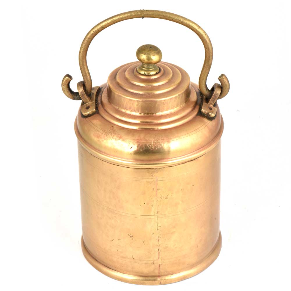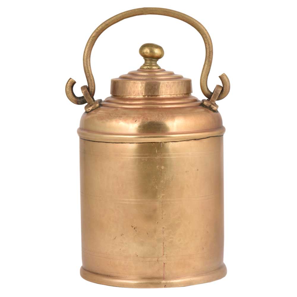 A lovely brass pot In a clinical shape with a small lid with rings engraved on the lid wit a heavy brass knob finial. It is quite spacious you can use it yourself or as a gift for near and dear ones , as a showpiece or as a planter pot.