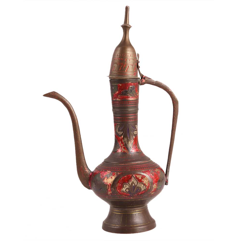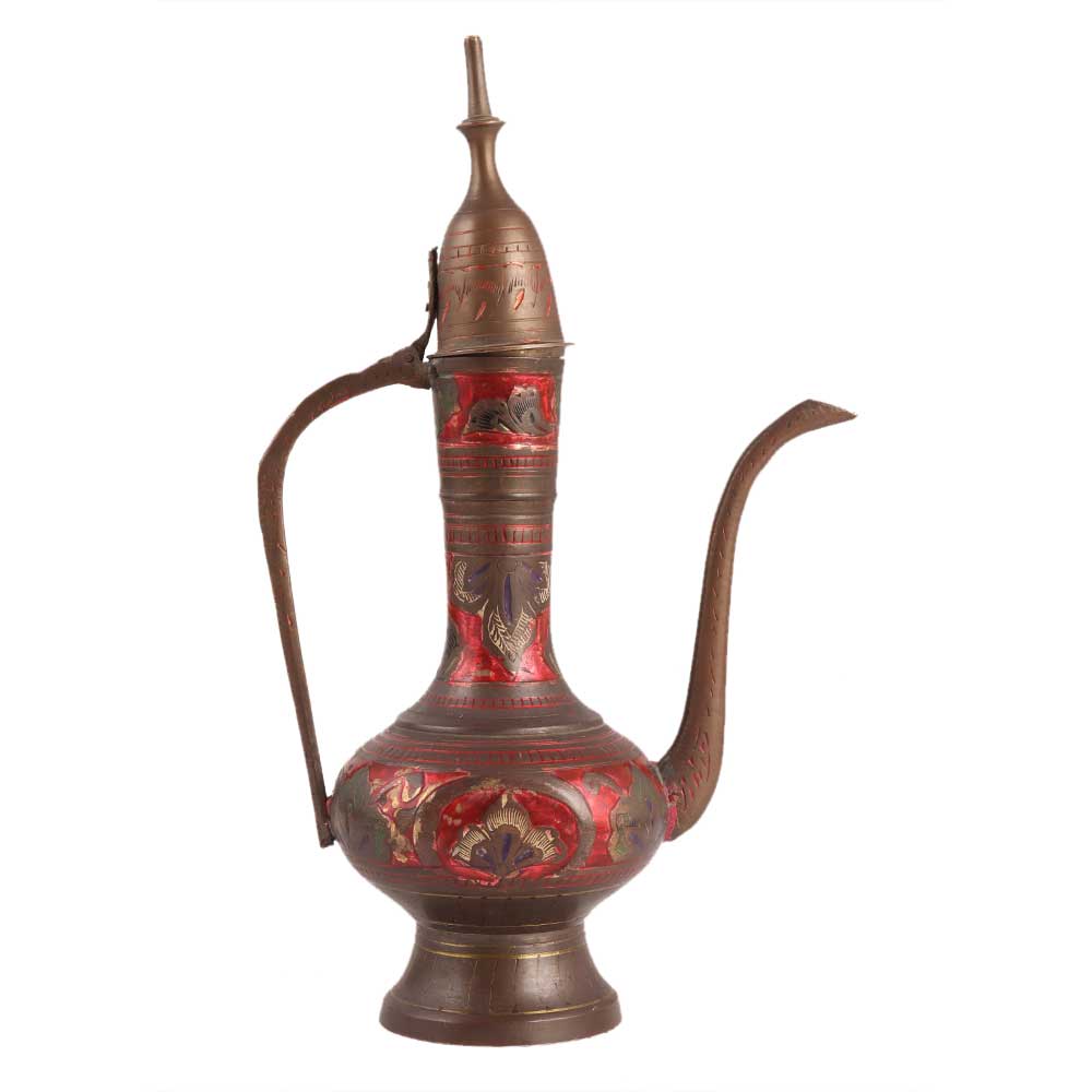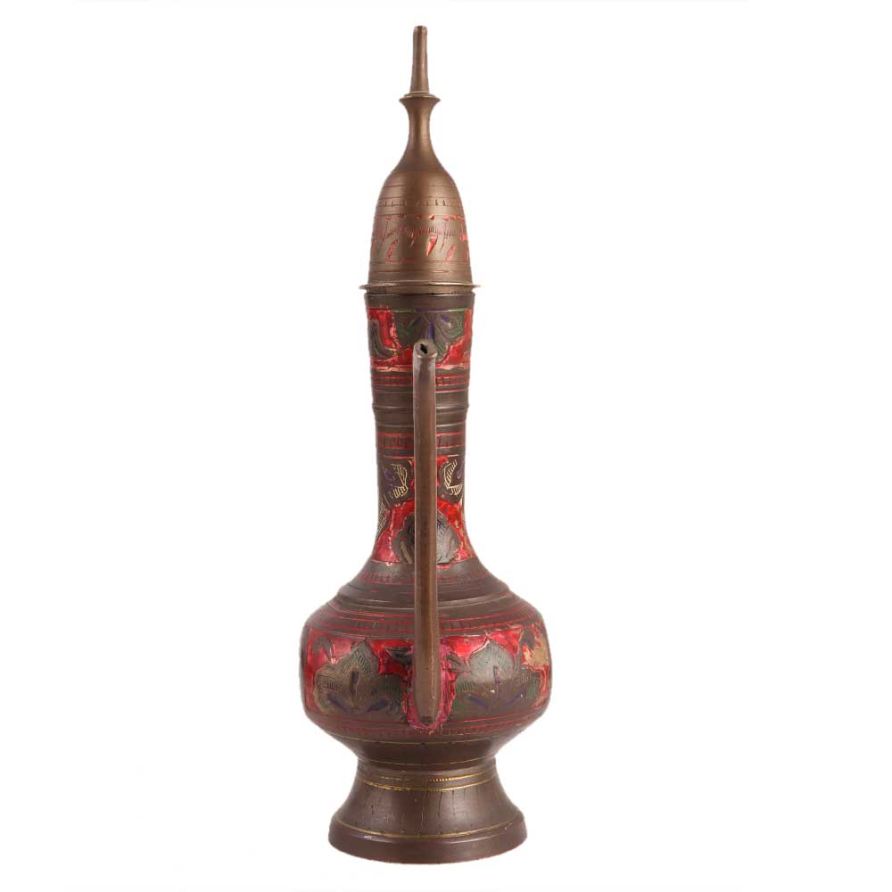 Handcrafted Red design on Brass Surahi Jug is a perfect blend of old and new. It is a perfect gift for a marriage, house warming party, anniversary, or other festive occasion. It is best for collection, home décor, and personal gifting. Ideal for collectors of decorative items.