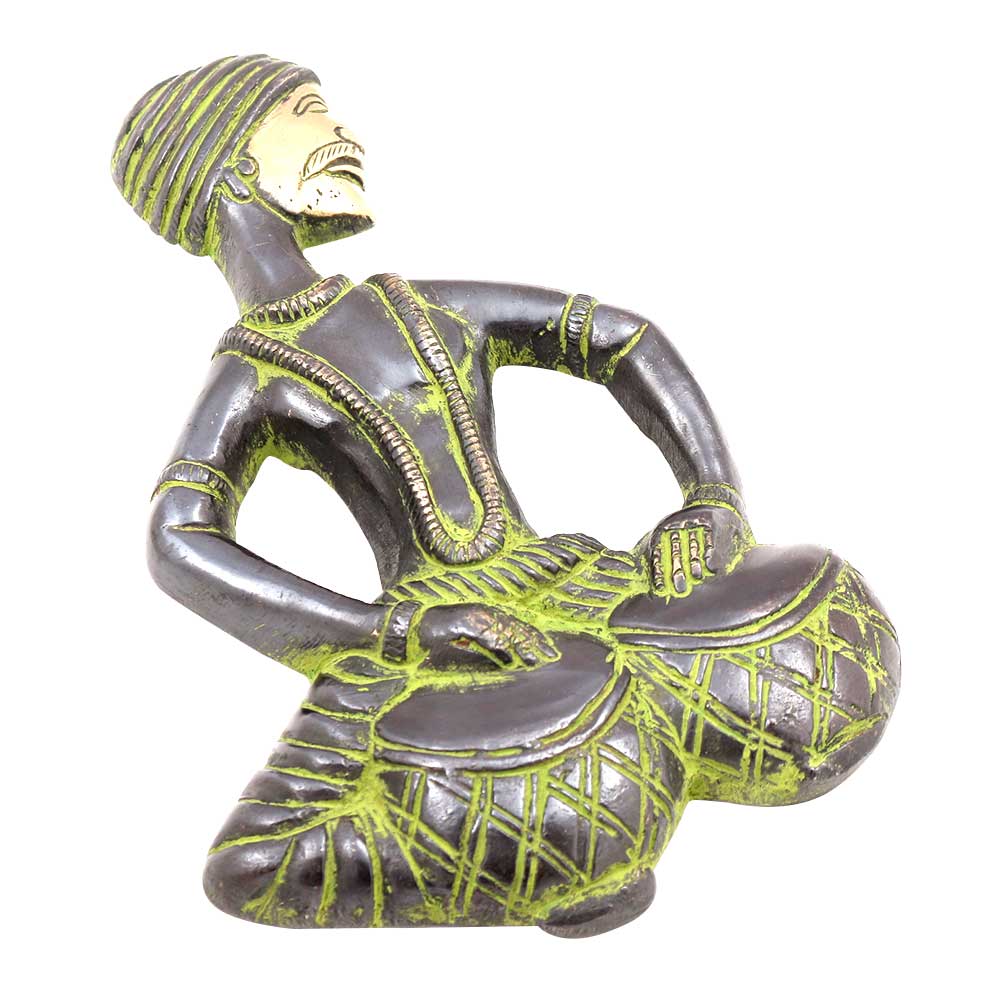 For people who are looking for something contemporary comes this wall hanging of a musician playing Tabla.Made of gun metal he is dressed in traditional attire.Traditional techniques have been used to carve this figure.Each product is handcrafted by skilled artisans and there can be a slight variation in colour and design.
