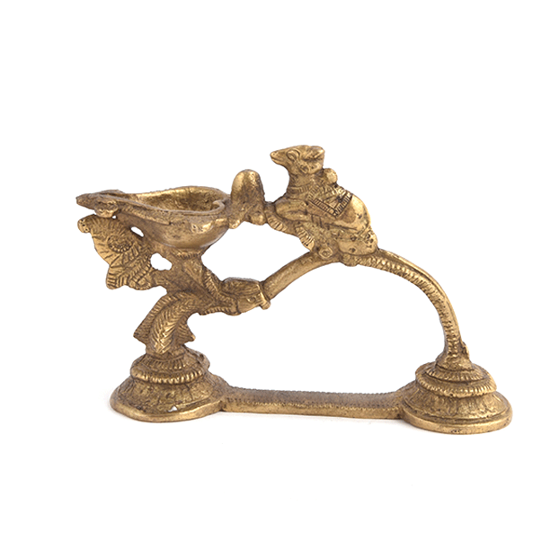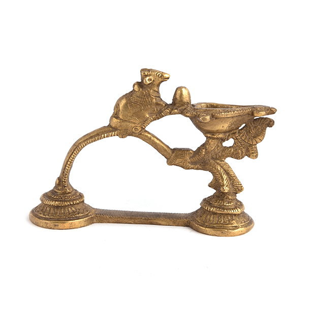 His Vintage Handmade Oil Lamp Comes with a Nandi Figurine on Top. This is a Traditional Lamp That Burns with Oil and Used During Religious Functions and Ceremonies. An Ideal Gifting Option to Friends and Family. /P>