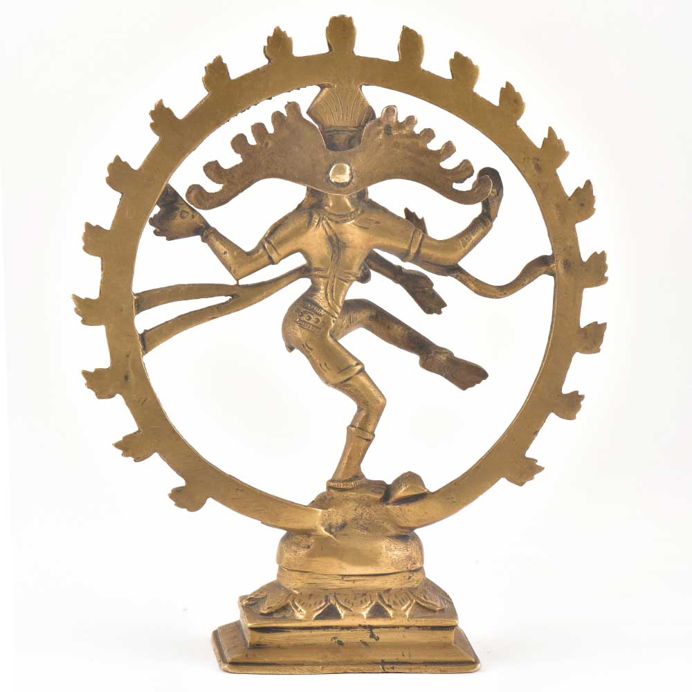 This is a very beautiful handmade brass statue of lord shiva depicted as Natraja the dancing god. The dance signifies putting an end to this exhausted world and creating a new world through lord Brahma who is responsible for the creation of the universe. In this statue lord shive is dancing With one leg on the demon and the other is lifted with a background of ring of flames. In one hand he holds the damru and the other is in abhayamudra mudra.