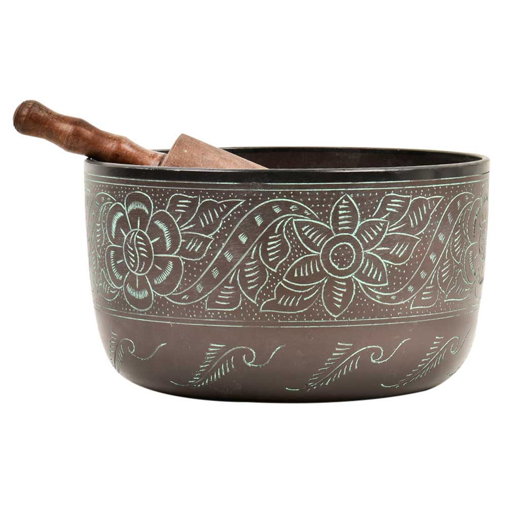 Handmade brass singing bowl for yoga meditation and healing practices.Plays Easily has high resonance with long lasting great sound. Healing bowl through vibration touch comes with a mat and a stick.Religious Gifts Item Metal Art India For Meditation.
