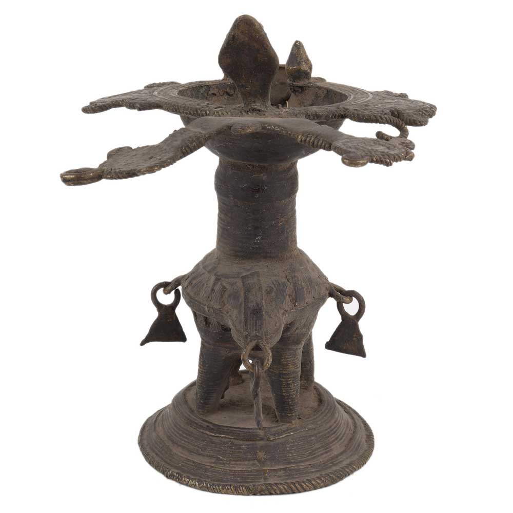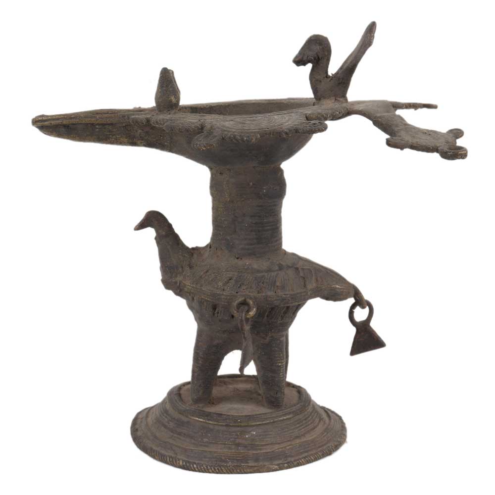Traditionally made brass oil lamp from Orissa with bird figurines with a big oil lamp or diya made by the local craftsmen adds spiritual flavor to you decor. Vegetable Oil, Mustard Oil or Desi Ghee can be Use to Light the Lamp with Cotton Wicks.