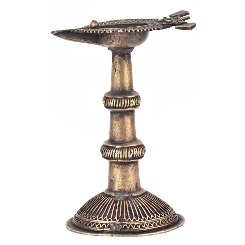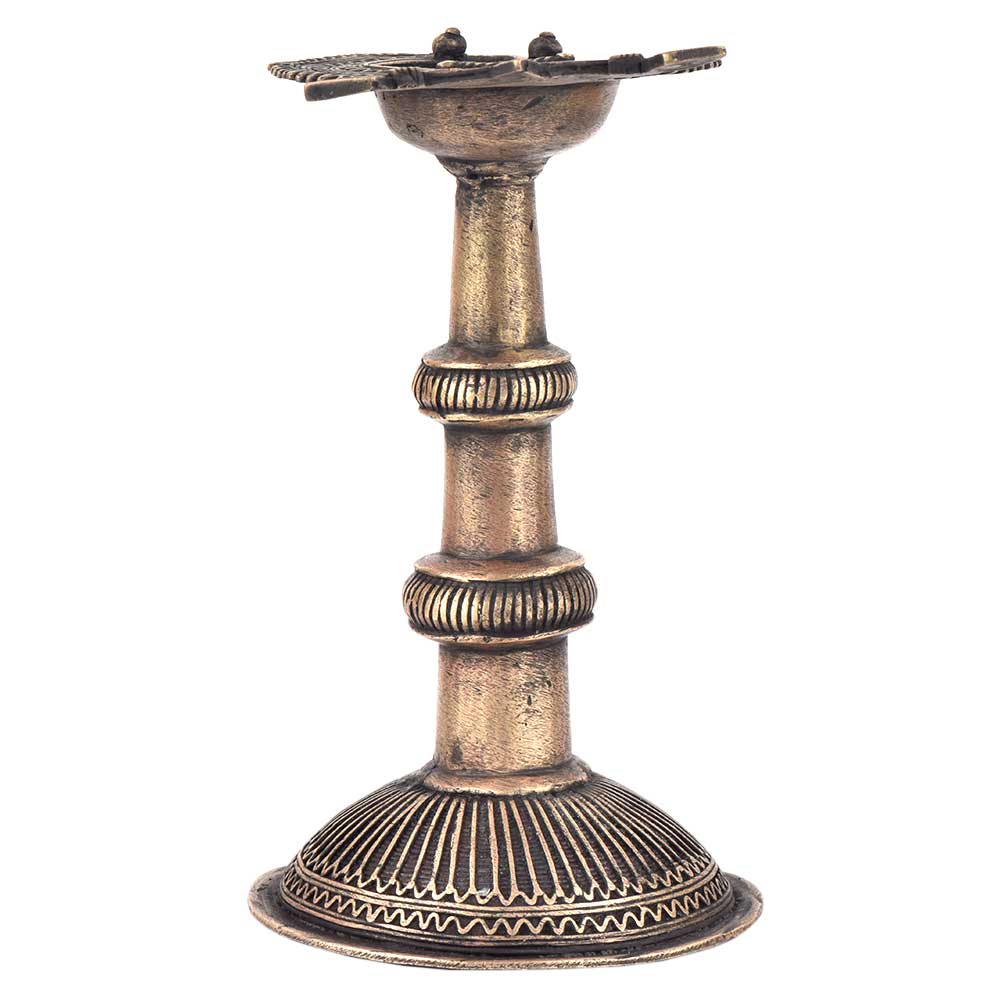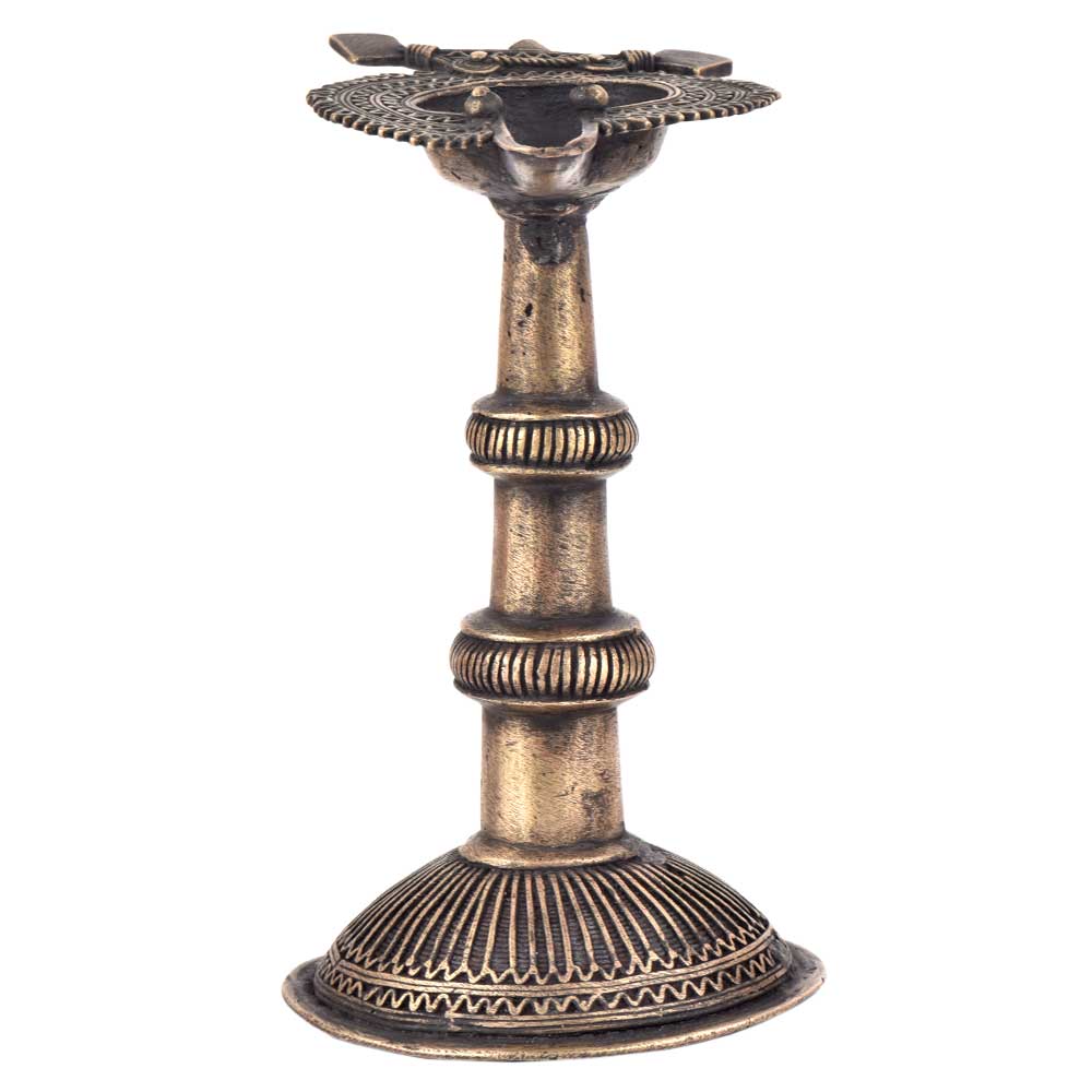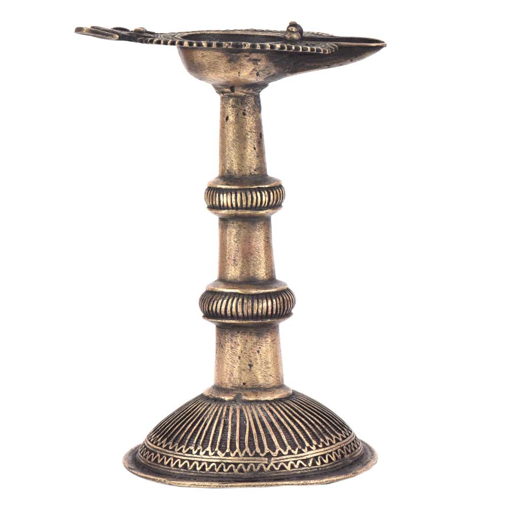 Handcrafted using old lost wax technique primarily practiced in Orrisa and West Bengals by the local or tribal artisans. In this technique the molten wax is poured into desired clay mould and when the wax melts the clay is broken and we get the desired metal object which is further polished to perfection. The Deep Cup Can Be Filled with Oil and Light a Cotton Wick. Diyas/ Oil Lamps are Considered Auspicious as in Hindu Religion. It is detailed with Elephant and Peacock Animals with Beautiful Details.
