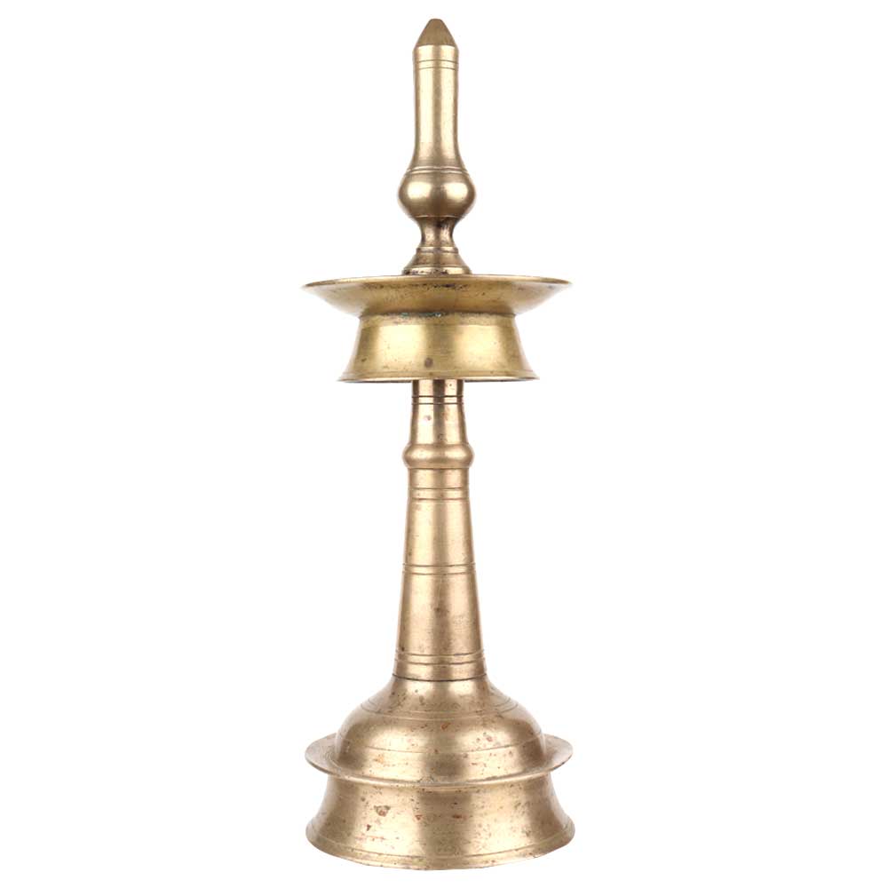 Kerala Nilavilakku Brass Oil Lamp. It Was Made by Lost Wax Process. Adds Spiritual Flavor to Your Decor. Vegetable Oil, Mustard Oil or Desi Ghee can be Use to Light the Lamp with Cotton Wicks.