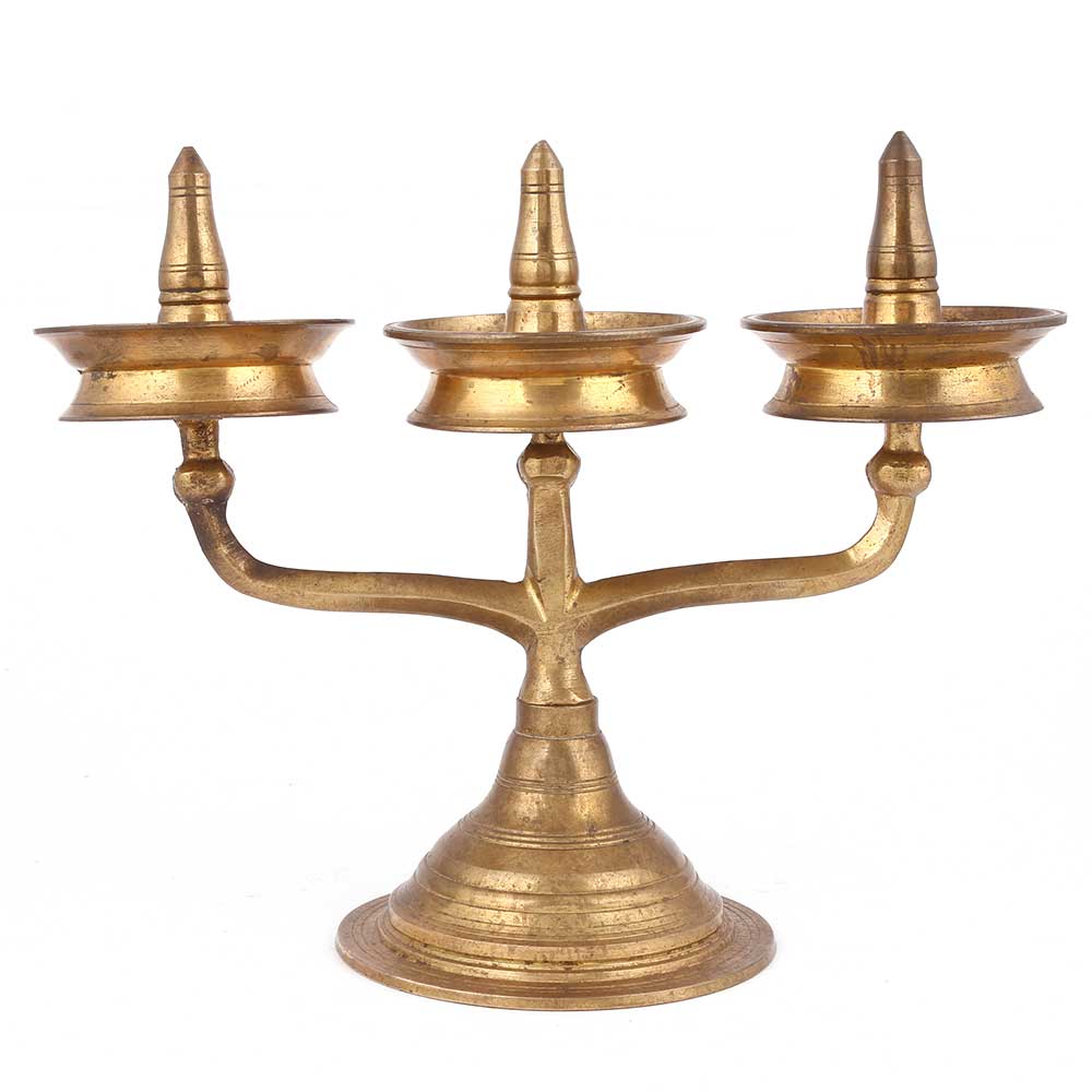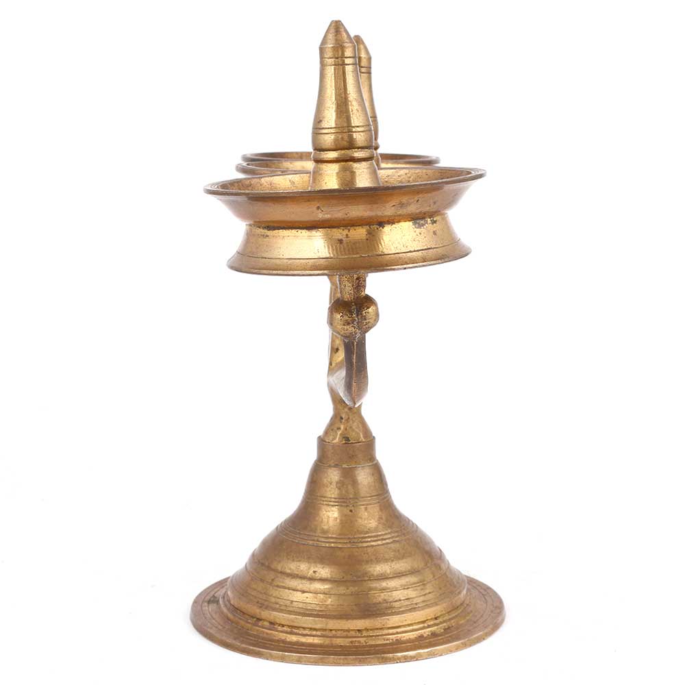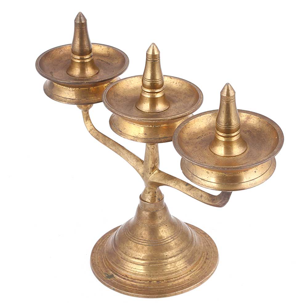 The brass oil lamp is made by the skilled artisans of India and is handmade. This brass oil lamp has one stand which is joint with three diyas like anshape of the trident. It can be used for gifting, decoration etc.