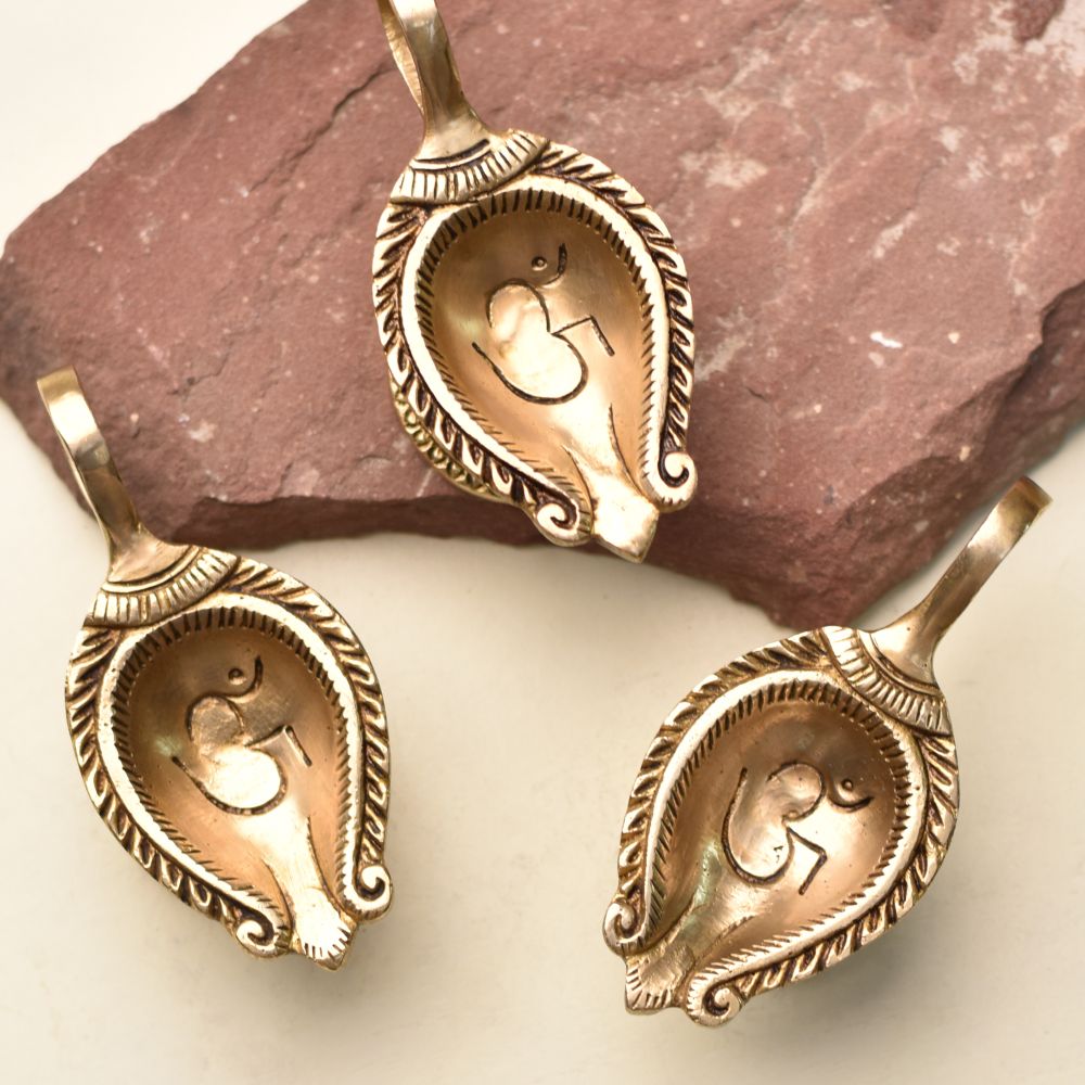 Infuse your home with divine energy through this Brass Om Carved Temple Diya Lamp, a sacred oil lamp handcrafted in pure brass. Featuring the auspicious Om carving, it represents spirituality, protection, and eternal light. With its radiant golden finish and temple-style design, this diya is perfect for mandir rituals, Diwali décor, and devotional offerings.