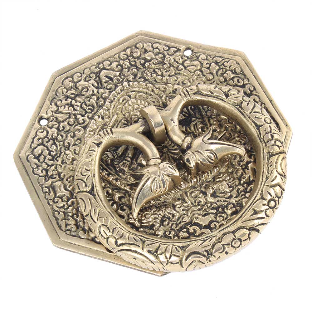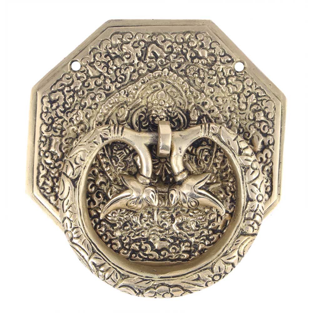 Brass Ornate Plate Elephant Motif Ring Door Knocker. This Knocker is truly perfect option for anyone, who needs their door hardware to both look good and work without any hassle. It sports a solid and sturdy structure and ensures years of flawless operation, while still being pleasing to look at.