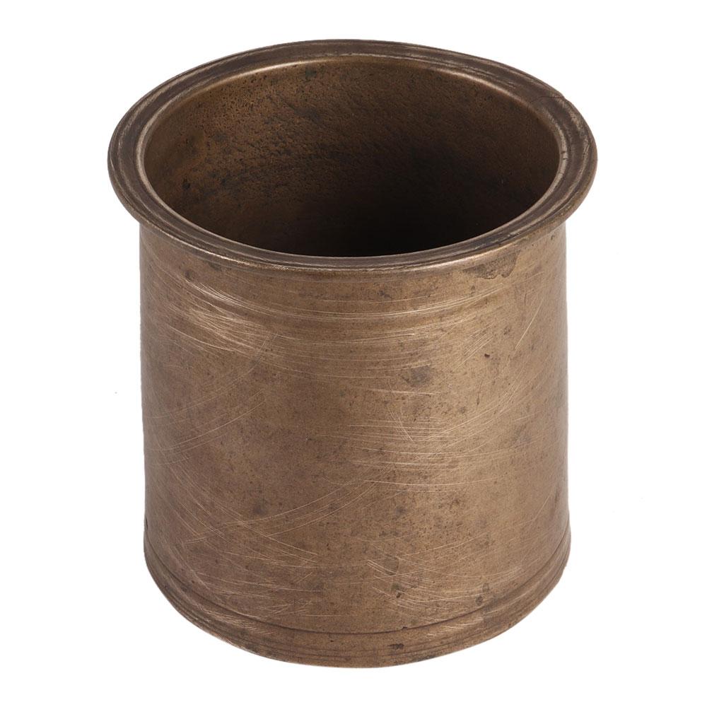 This old brass panchpatra cup can be used as a pen pencil organizer, a flower vase, or a candle holders cup in the puja room for prayer or wedding decoration.