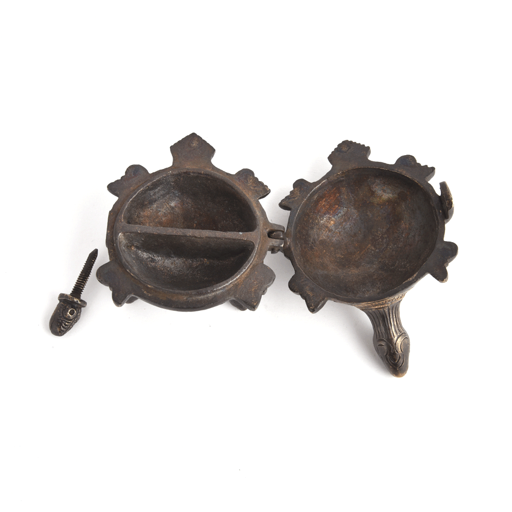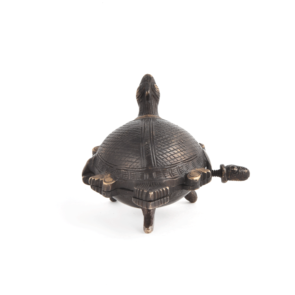 Handmade Brass Turtle Figurine with a Small Storage Box to Store Small Pieces of Jewelry Like Earrings, Rings, Nose Pins. It Can Also Be Used in the Puja and Also as a Paper Weight. Place the Turtle in the Interiors of Your House to Attract Good Luck and Positive Energy. The Box Can Be Sealed Using a Small Screw to Keep Your Belongings Safe and Intact.