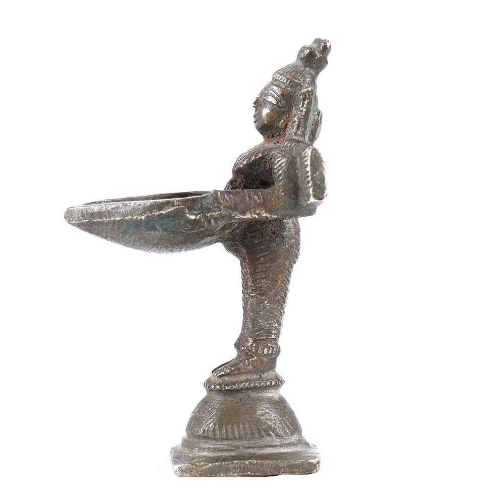 The indian brass oil lamp, also known as a diya, is a traditional oil lamp featuring a lady figurine. The diya is an oil lamp that burns vegetable oil or ghee Indian butter and has been used as a source of light and ornament since classical era. You can also use them as ornaments in your home, such as in the living room or bedroom, or to replace candles on a dinner table.