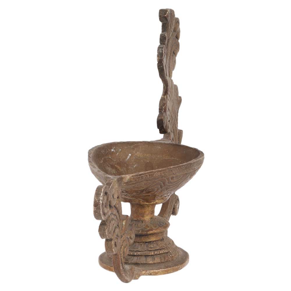 Brass Peacock Diya Pooja Decoration .Ideal and Perfect for Home, Temple and House Warming gifting as well. Hand graven Pure Brass Diya with Antique end Brass kerosene lamp with one wick holder and exquisite style graven elaborately with fine details.. The brass kerosene lamp includes a pedestal like support that keeps the diya on top of from the bottom