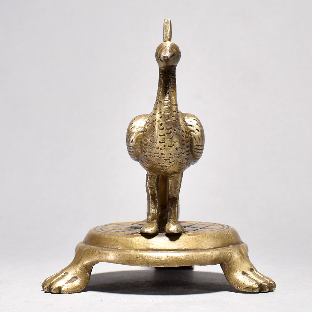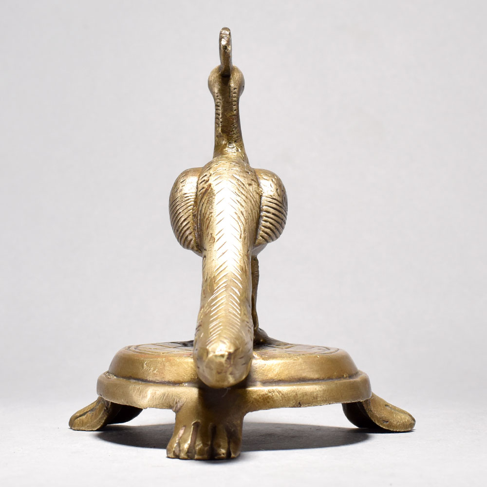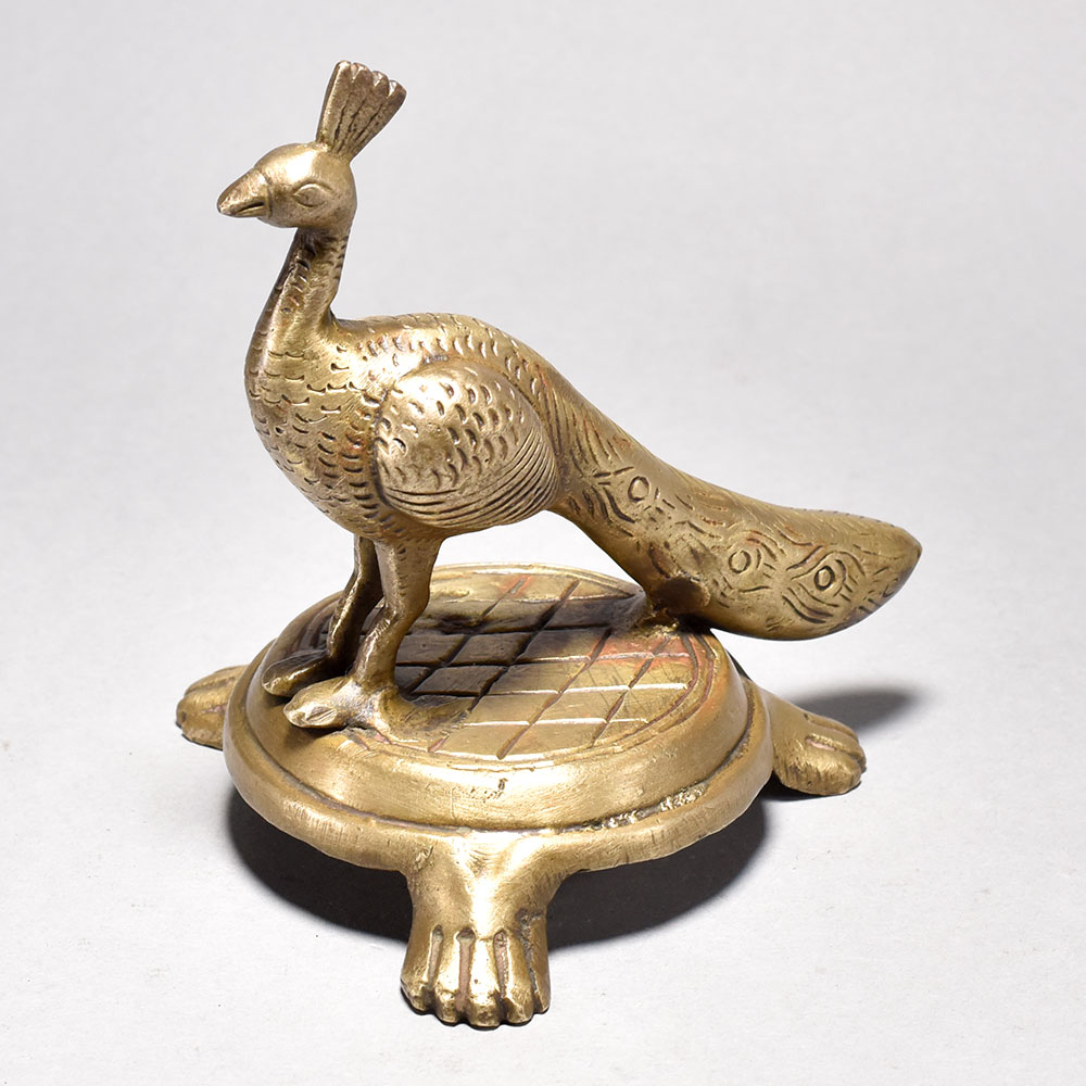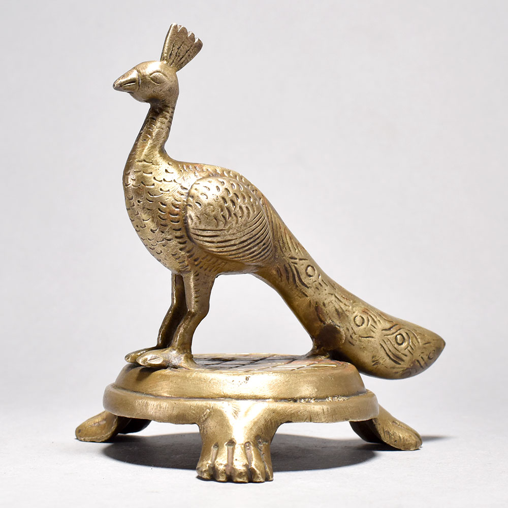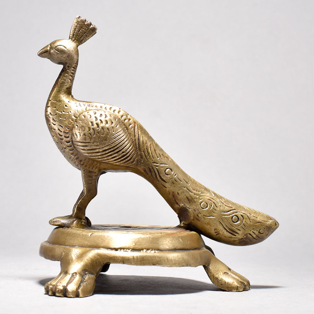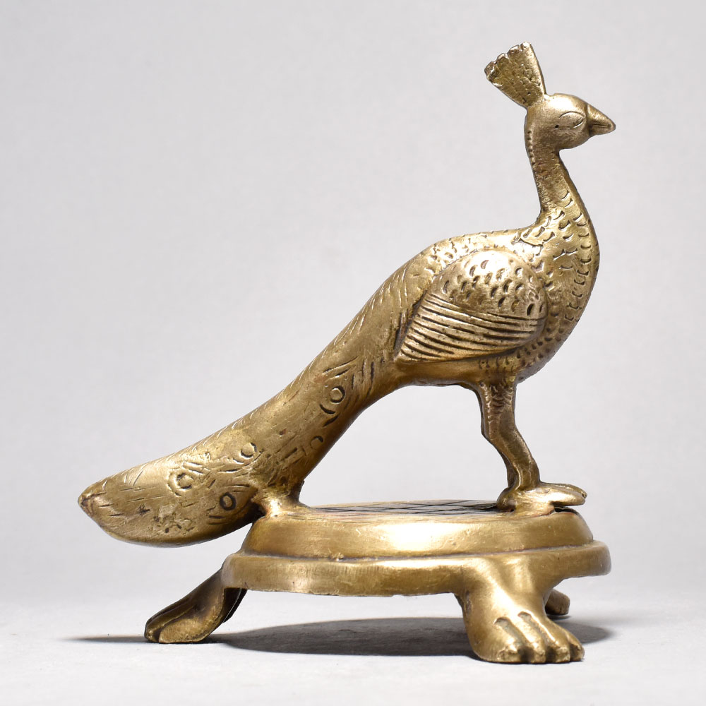 Elevate your space with the captivating presence of the Vintage Brass Peacock Figurine.This exquisite brass peacock figurine is a true masterpiece of Indian craftsmanship. Meticulously handcrafted, each intricate feather pattern and graceful curve captures the regal essence of this magnificent bird. The gleaming, golden brass lends an air of timeless elegance that will instantly upgrade any room. Whether you're a seasoned collector or simply seeking to infuse your home with a touch of global sophistication, the Vintage Brass Peacock Figurine is a must-have. Display it proudly on your mantel, side table, or bookshelf, and let its captivating presence inspire awe and admiration in all who behold it. Premium brass construction for a lustrous, high-quality look Intricately detailed Indian art design showcases the majestic peacock Perched atop a round base for added stability and visual appeal This unique handcrafted piece is a testament to traditional artistry, blending functionality with beauty and making it a treasured collectible for years to come.