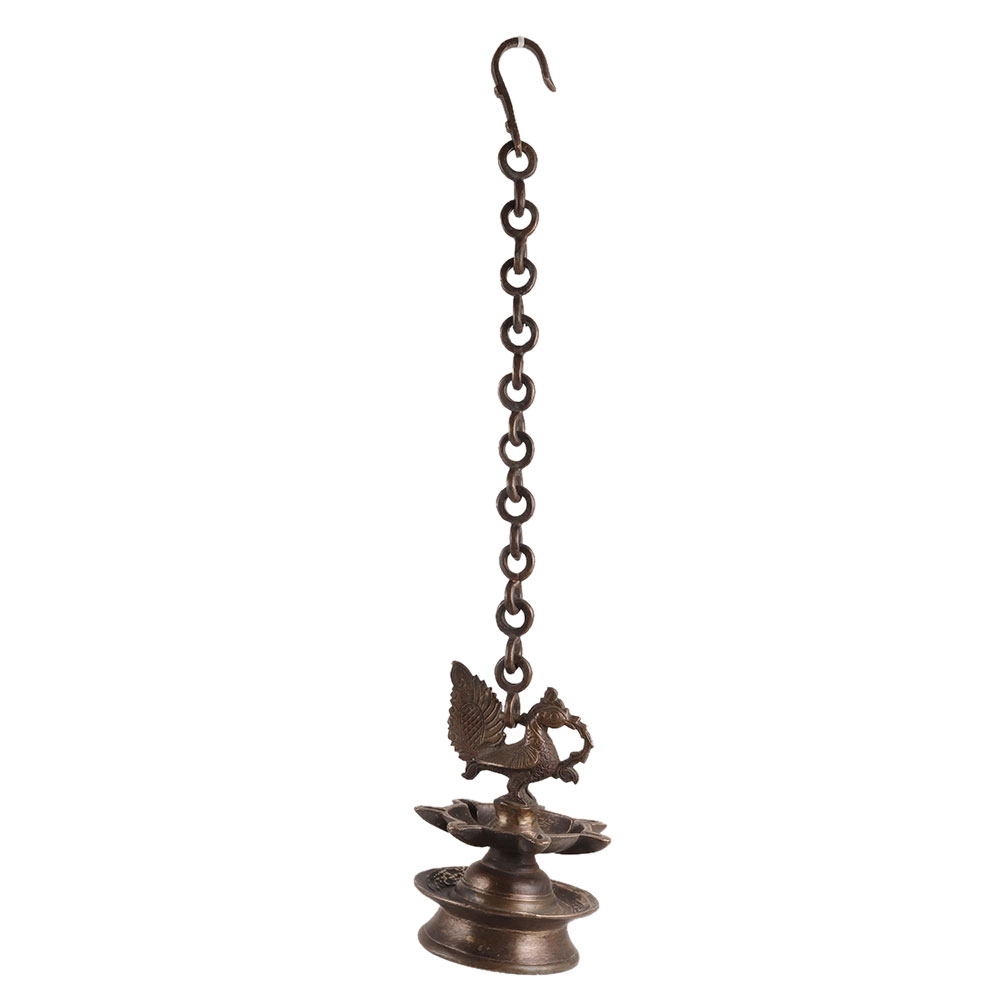 The Peacock brass hanging Diya with bells is a standout among wall-hanging brass diyas. It is ideal for home decoration because it also functions as a wind chime. It also looks nice as pooja room decor. The peacock is surrounded by nine diya on the wall hanging Diya. The number nine represents the nine types of bhakti with which the deities should be worshipped. These hanging diyas are ideal for Diwali home decor and one of the most authentic gift options, especially for housewarming ceremonies.
