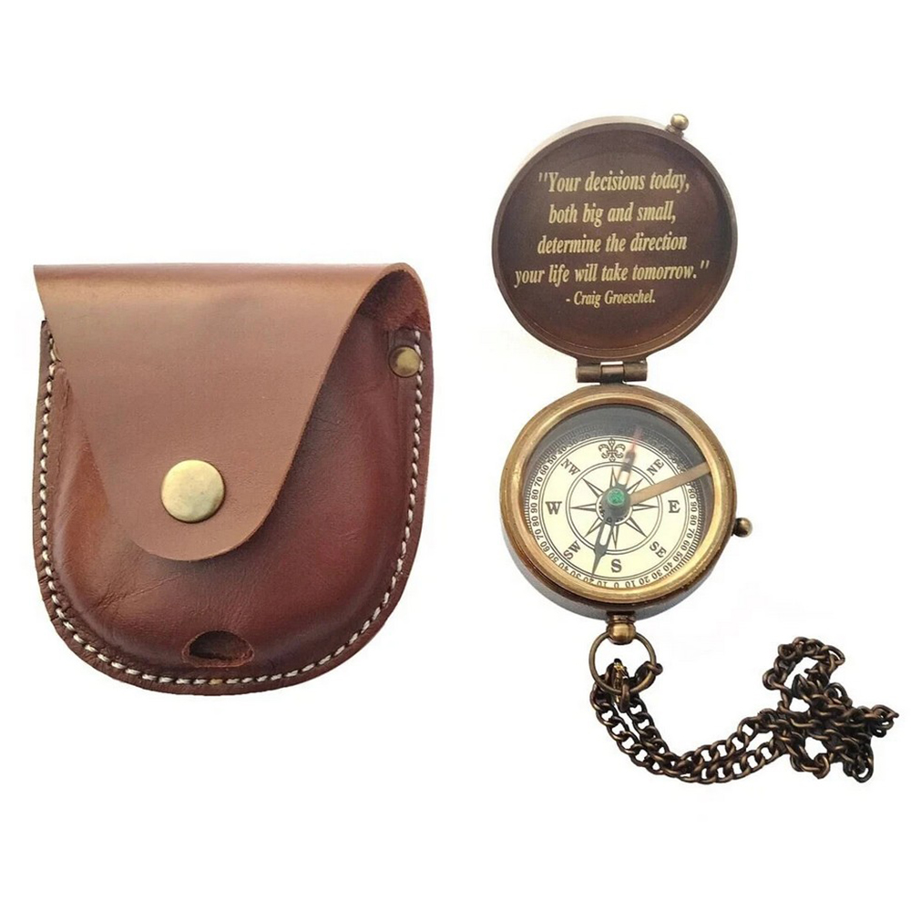 Brass Pocket Compass with Leather Case Quote