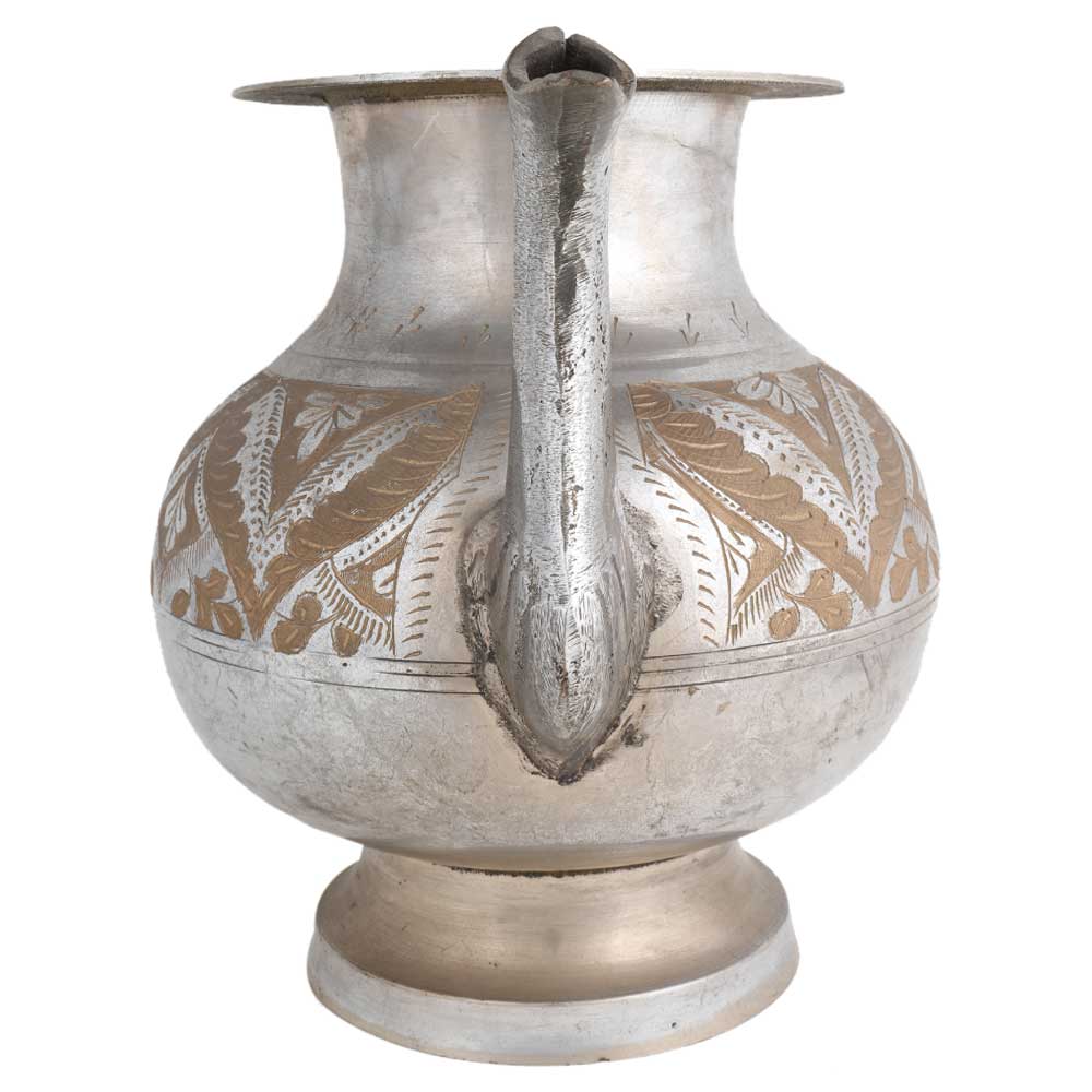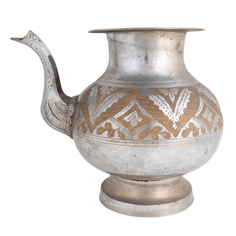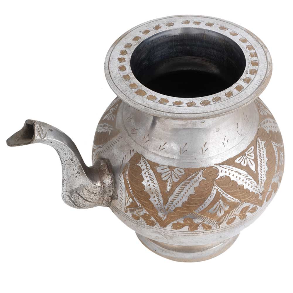 Brass Pot With Spout Engraved Leafy design Nickel Plating is an excellent craftsmanship done by the indian artisans. craftsmen of India. Kitchen decoration, souvenir , hotel decoration. Diwali gift, wedding gift , flower decoration and planter. Use it as collectable or a personal gift to special someone.