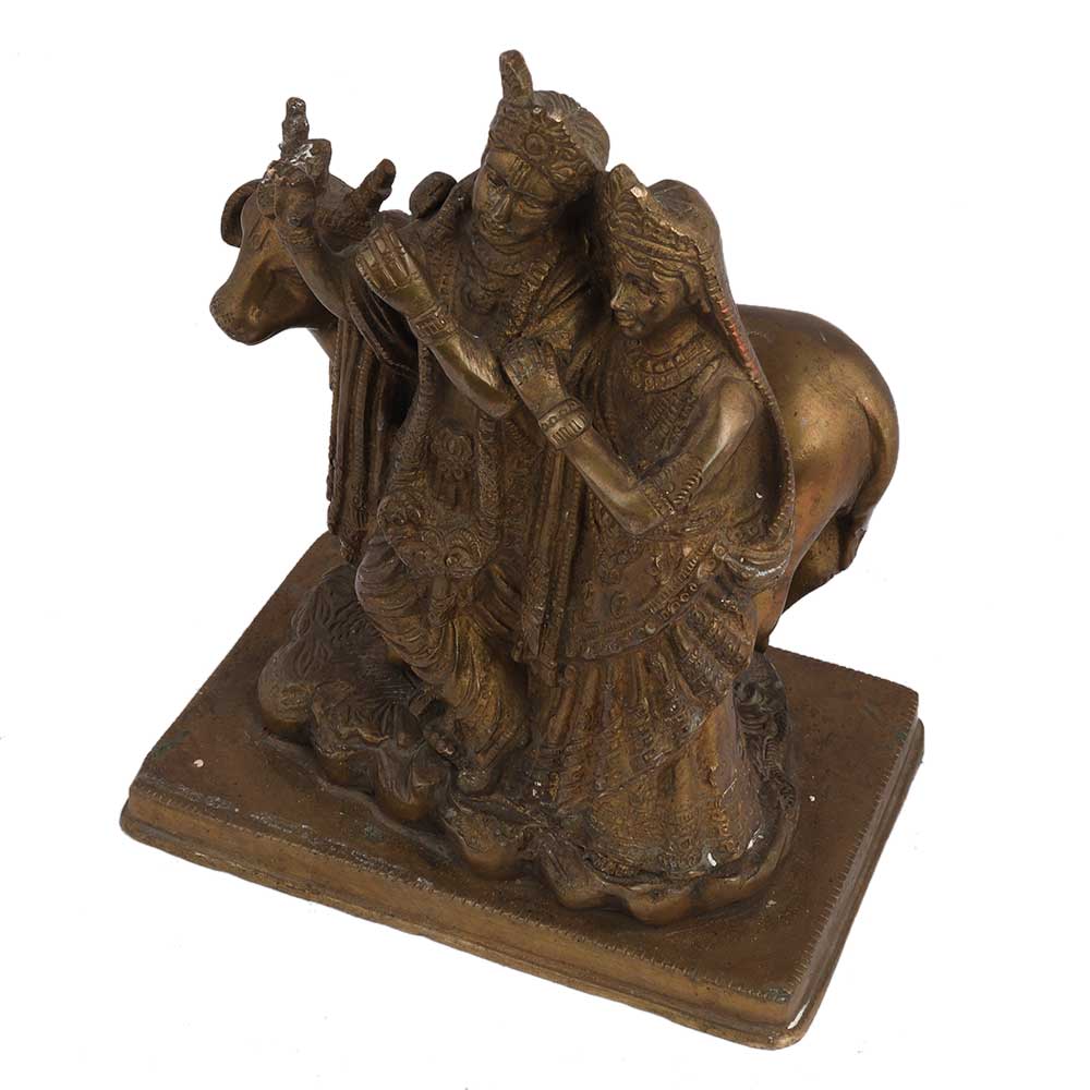 Brass Radha Krishna With Cow Statue  Fills the Atmosphere with Peace and Positive Energy. Diwali gift, new year gift, wedding gift and return gift.