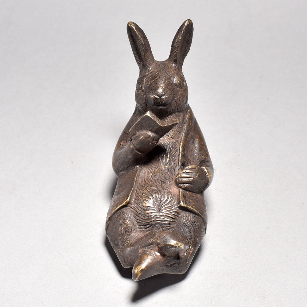 Enchant your home with the captivating Brass Reading Rabbit Figurine - a stunning work of English art that celebrates the magic of reading.This delightful figurine transports you to a serene, whimsical world where a rabbit is so lost in the pages of a book that the outside world fades away. Display this piece proudly on your desk, shelf, or side table to infuse your space with a sense of wonder and tranquility. The Brass Reading Rabbit makes a thoughtful gift for book lovers, rabbit enthusiasts, and anyone who appreciates fine craftsmanship and the simple joys in life. Its charming presence will inspire moments of peaceful reflection and imagination in your daily routine. Crafted with meticulous attention to detail from high-quality brass Intricate design captures the rabbit's fur, the book, and its engrossed expression Depicts a rabbit in a relaxed, contemplative pose as it reads a book Exquisite English craftsmanship