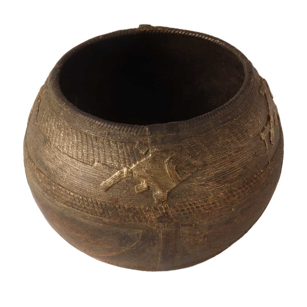 A dark brown rice measuring or mana bowl for decoration and vintage collection. This handmade bowl is made of high quality brass and will add an attractive touch to your interior. Buy this brass bowl online from our website to get hassle-free delivery at a reasonable price. This pital ka lota is a perfect decoration item for your home, office, stage, wedding, birthday, restaurant, cafe, shop, bar or spa. Its unique design and fine workmanship will make it an eye-catching piece for your decor and visitors. This rice measurement bowl is a perfect gift for your friends, family, neighbours or relatives on a special, festive or auspicious occasion.