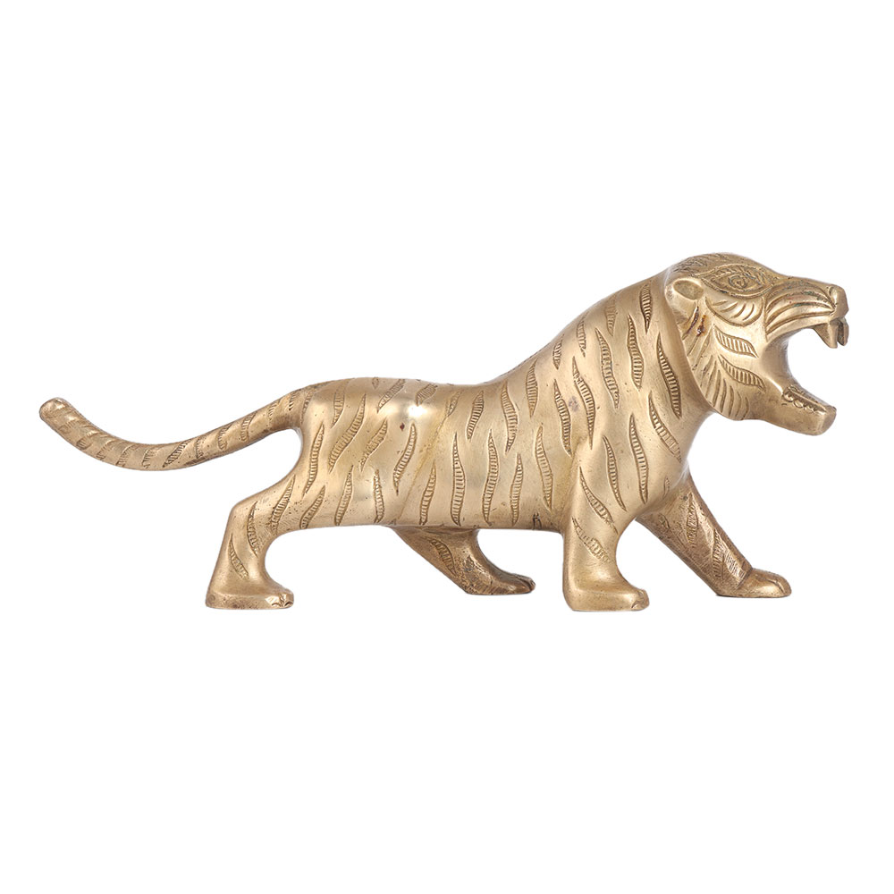 This roaring tiger statue was carved from brass metal alloy. It was hand carved by skilled workers in India according to Indian art with intricate details. People believe that placing a roaring tiger statue in their home or office will bring good luck and protect them from bad luck. Some people also believe that owning a tiger statue brings wealth and good luck. Tiger statues have been used for decoration for a long time. People believe that they spread positive energy in their homes. Consider them as a gift on special occasions for your loved ones.