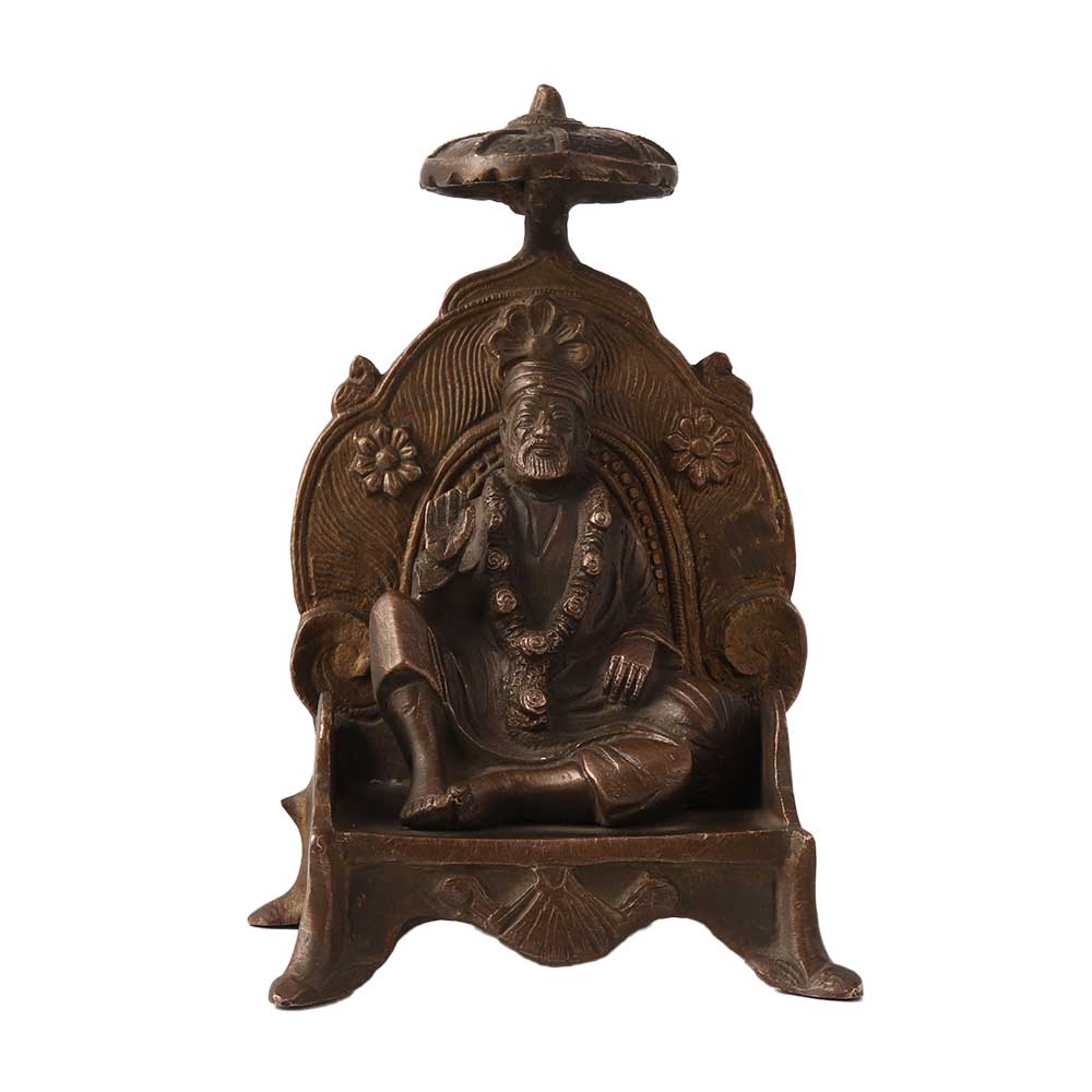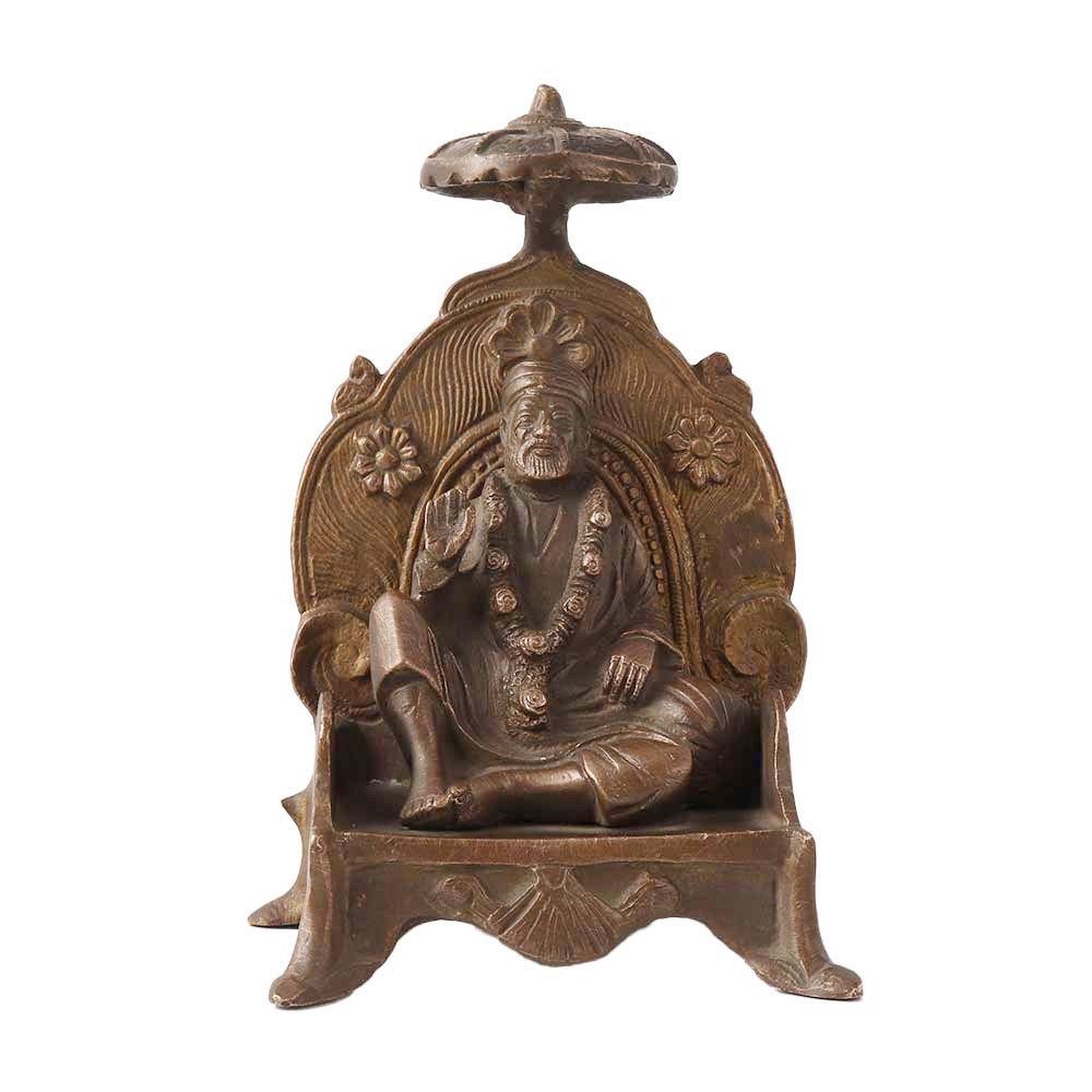 The Sai Baba seated on throne brass statue is a popular representation of the Hindu saint, Sri Sai Baba of Shirdi. The statue depicts Sai Baba sitting regally on a throne, with a serene expression and outstretched hand, symbolizing his blessings to all those who seek them. The god murti made of brass material gives the statue a warm and inviting appearance, making it an ideal piece for spiritual spaces and homes. The intricate details of the throne and Sai Baba's attire highlight the skilled craftsmanship that goes into creating each statue. As a symbol of devotion and guidance, this c of Sai Baba is a cherished item for many devotees and a beautiful addition to any home or temple.