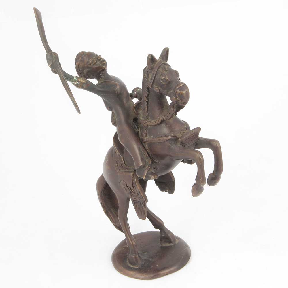 Brass Sculpture Horse Warrior Rider Figurine Decor Collectible. This Piece Could Be Used as Decorative Display on a Coffee Table, End Table or a Book Shelf.