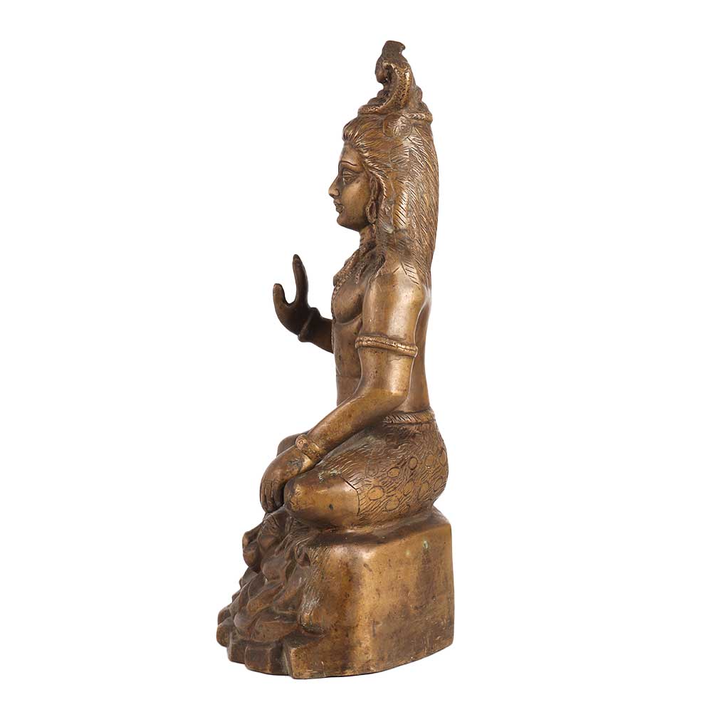 Buy an exquisite statue that depicts Lord Shiva, one of the most revered deities in Hinduism, seated in a serene and peaceful posture. The statue is made with high-quality craftsmanship and finished in a dark brown hue, creating a stunning visual impact. It is an auspicious addition to any space, including prayer rooms at home, office, restaurant, hotel, cafe, or shop, and is perfect for decoration and collection. The intricate detailing on the statue adds to its charm, capturing the essence of Lord Shiva's personality and teachings. Lord Shiva is known as the destroyer of evil and the transformer, and his presence can help create a positive and peaceful environment. It can be used as a focal point for prayer and meditation or as a decorative element to enhance the aesthetic appeal of any space. Gift this incredible statue to your loved ones on special, festive and auspicious occasions.