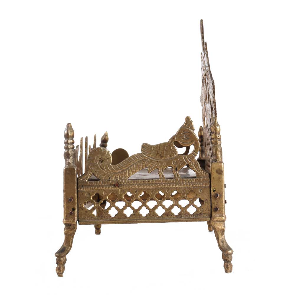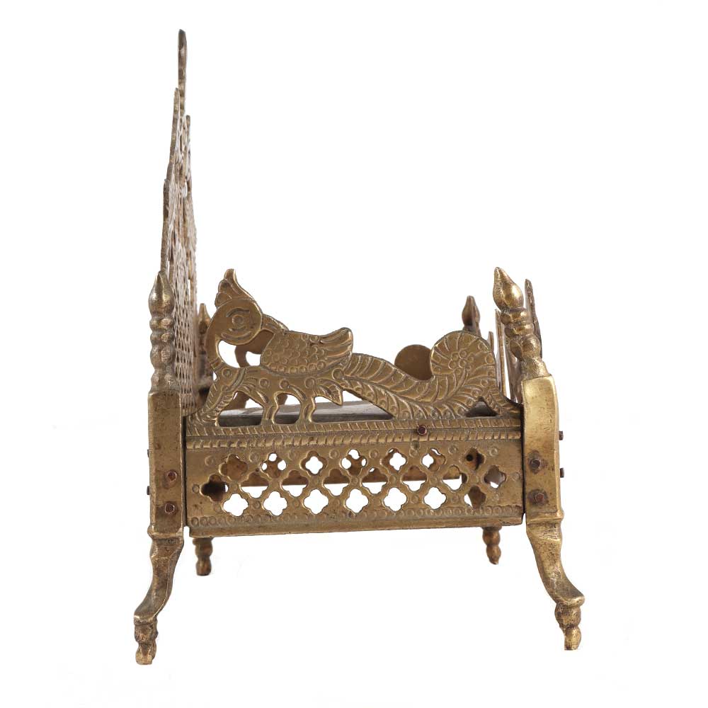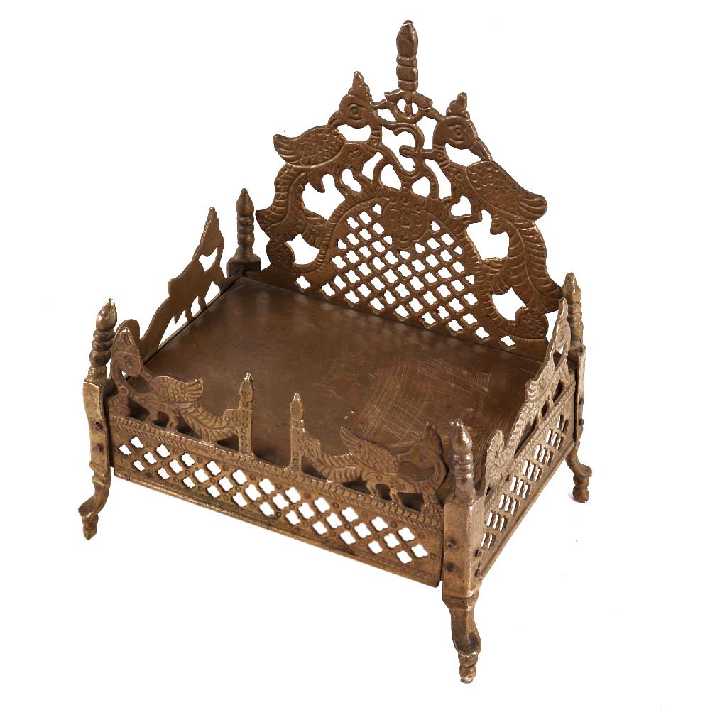 This chowki is made of high-quality brass and features heavy, exceptional craftsmanship. This can be used for any deity and will enhance your pooja experience. This singhasan is a handcrafted item with beautifully curved inlays. This chowki is appropriate for any setting, including offices, homes, factories, and workplaces.