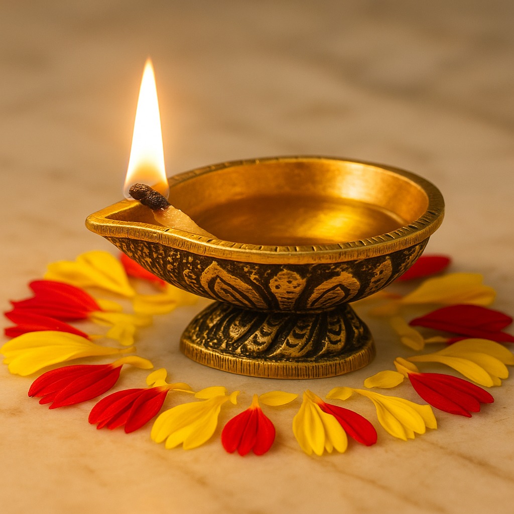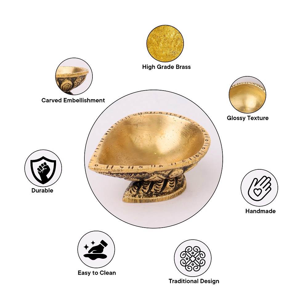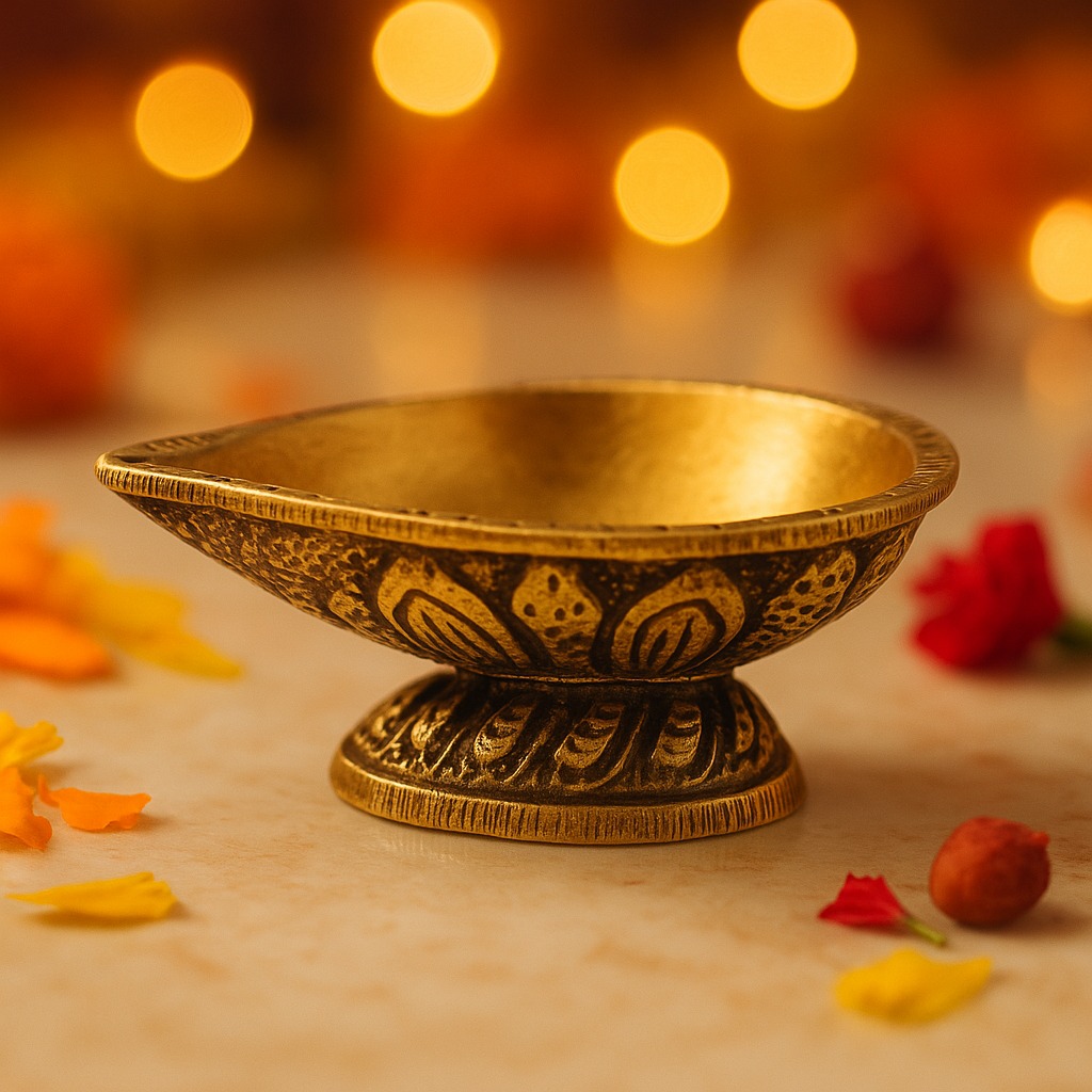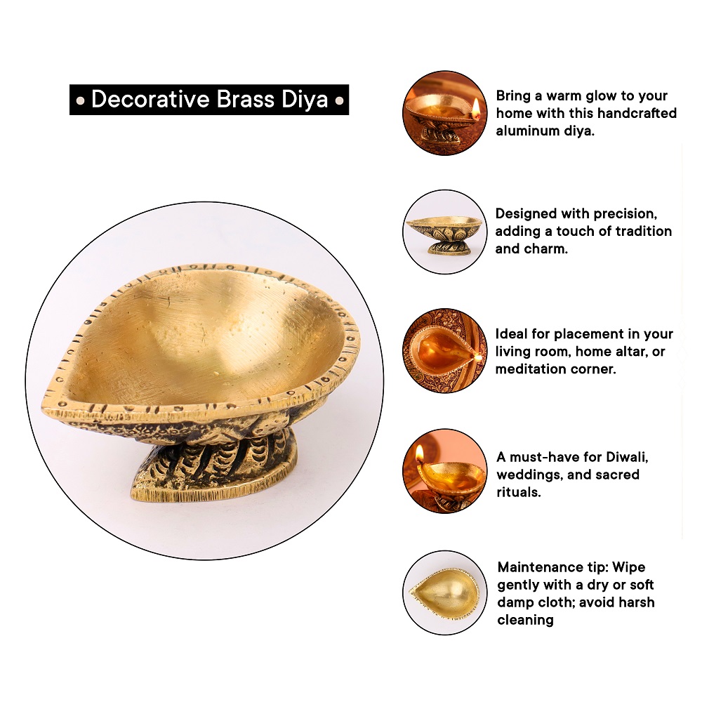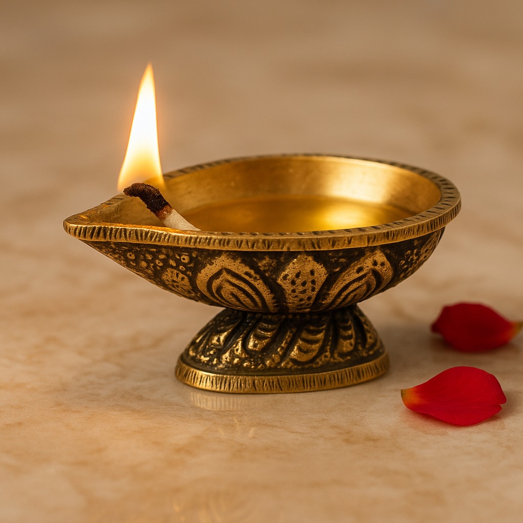 Light up your sacred space with this Traditional Brass Single Wick Oil Diya, designed in a compact yet graceful form for everyday worship. Made from pure brass with a polished golden finish, it symbolizes clarity, devotion, and the eternal flame of faith. Ideal for mandirs, altars, and spiritual rituals, this diya carries the essence of tradition in its simplest and most authentic form.