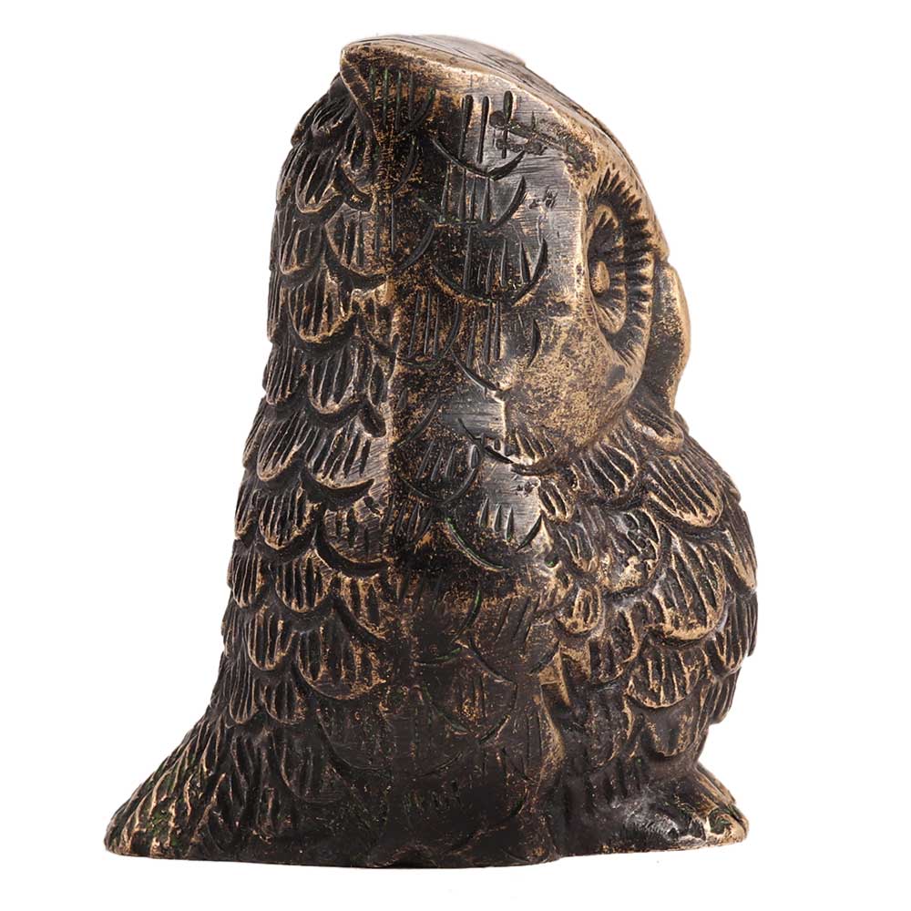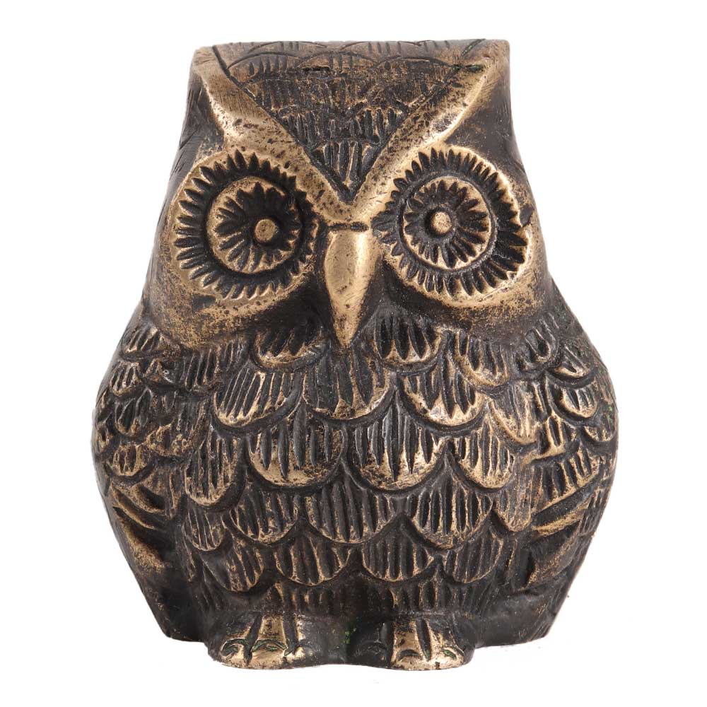 Owl is a yang symbol in Ancient Feng Shui and Vastu, and it is known for supporting health due to its lower energy. The owl is known for its wisdom, protection, and dispersal of darkness's carelessness. The owl is well-known for its wealth, which promotes personal development and financial success. A nice piece of table decor for the home or office. High-quality corporate gifts. Brass has a truly aesthetic, classic, and classy appeal.