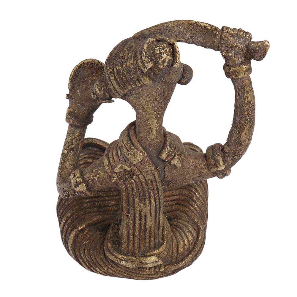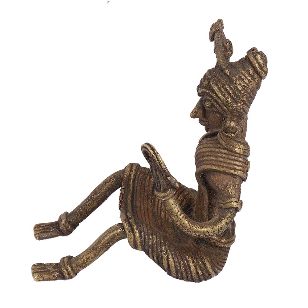 Brass Sitting Tribal Women Combing Hair looking Into A Mirror .This statue is used as a display item for the living room or as a gift for friends and relatives who are fond of handmade trial statues. Wedding gift, anniversary gift, house warming gift.