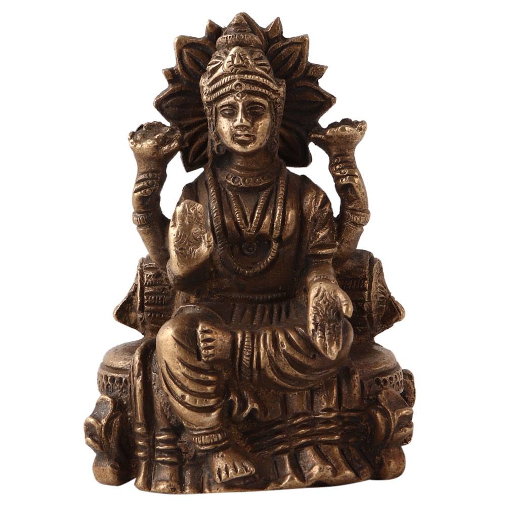 Buy a small handmade statue of Goddess Lakshmi in sitting position. This statue of Goddess Laxmi or Lakshmi is handmade of brass using traditional methods with intricate details. This statue represents the idol of Goddess Lakshmi holding a lotus in two hands. She is one of the main goddesses in Hinduism and brings wealth, happiness and prosperity to your home. Place this exquisite statue in your prayer room facing north or northeast, or in the temple. Gift this auspicious statue to your loved ones on special or festive occasions.
